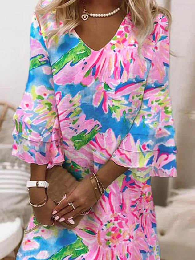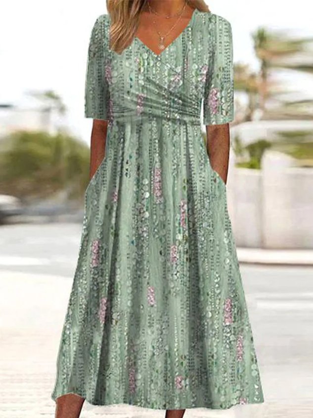 Floral V neck Casual Half sleeve Dress