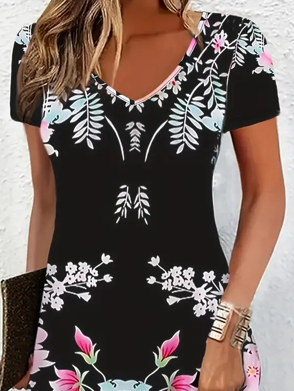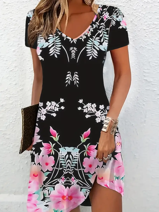 Women's Floral Spring Print Casual V-Neck Short Sleeve Dress