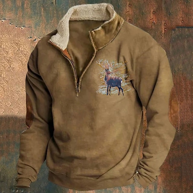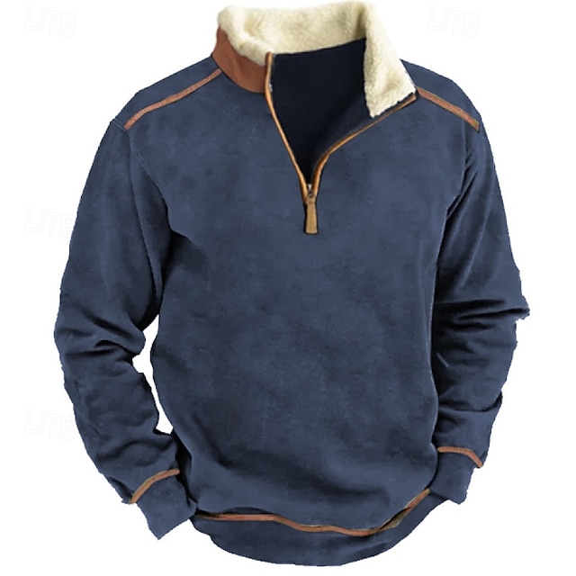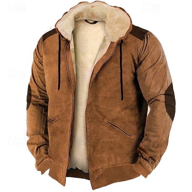 Men's Western Jackets Fleece Vintage Suede Leather Jacket 1/4 Zipper Button Winter Coat Casual Retro Outerwear