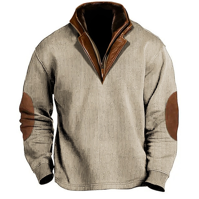 Mens Corduroy Sweatshirts Casual Fashion Long Sleeve Stand Collar Henley Shirt Loose Vintage Fall Pullover Streetwear