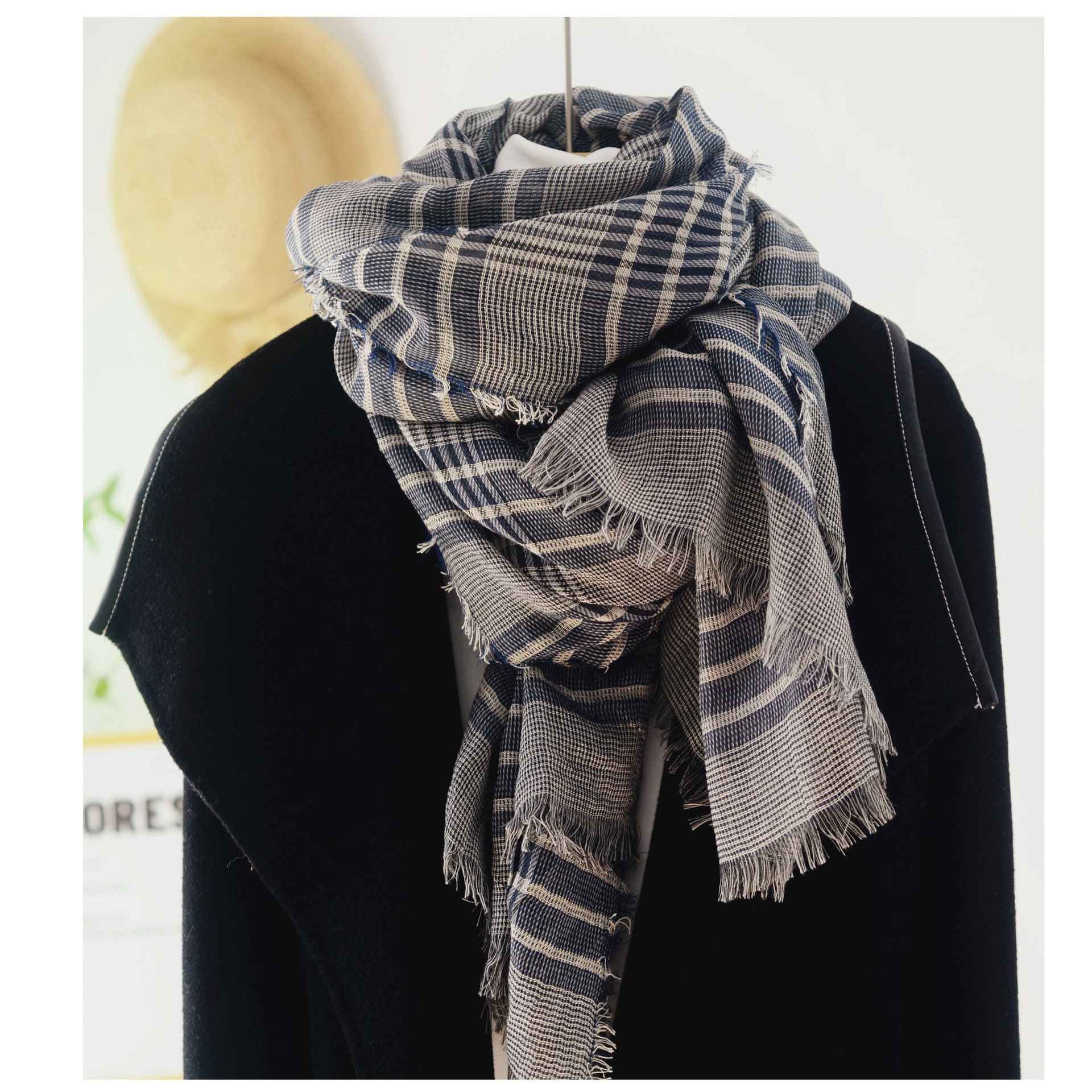 European and American autumn and winter plaid scarf thin Korean style versatile men's houndstooth