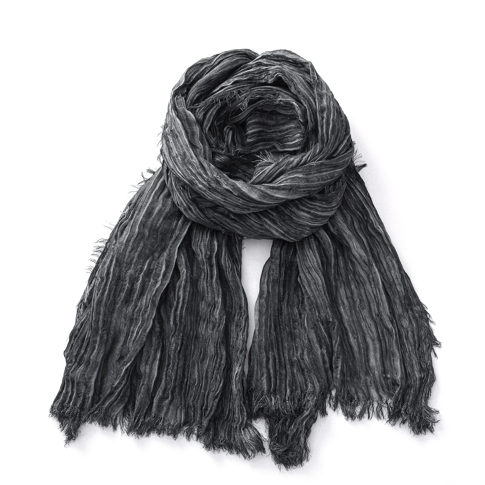 Cotton and Linen Scarf Autumn and Winter New Style Artistic Pleated Retro Handmade Dirty Dyed Solid Color Men's Scarf