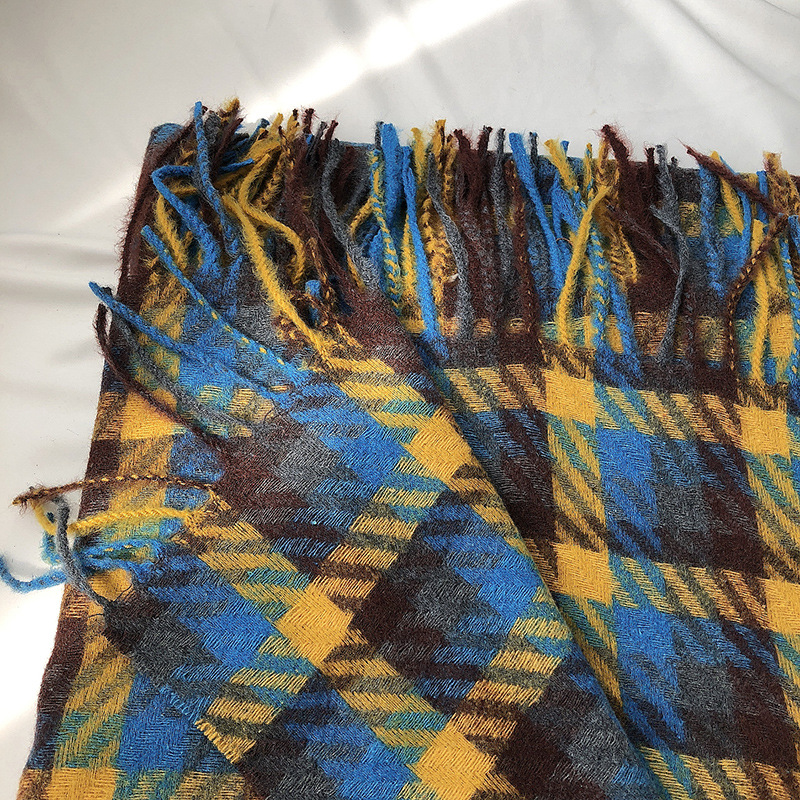 Warm double-sided cashmere plaid scarf