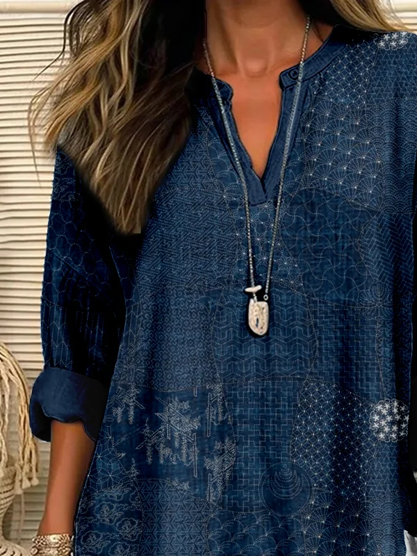 • Cotton And Linen Leaf Loose Vintage Shirt