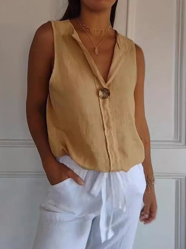 • Cotton And Linen Others Loose Elegant Vest