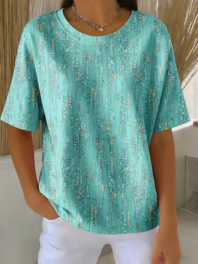 • Cotton Shirt Sleeve Round Neck Summer Casual Top