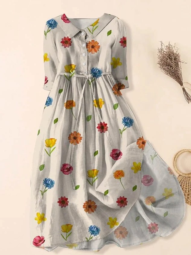 Cotton Casual Floral Dress With No Belt