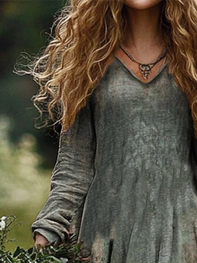 V Neck Loosen Casual Long sleeve Woven Dress