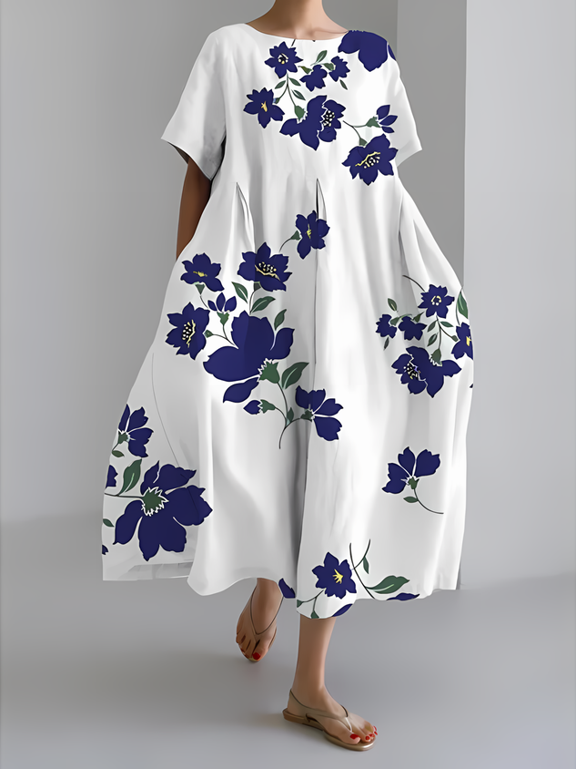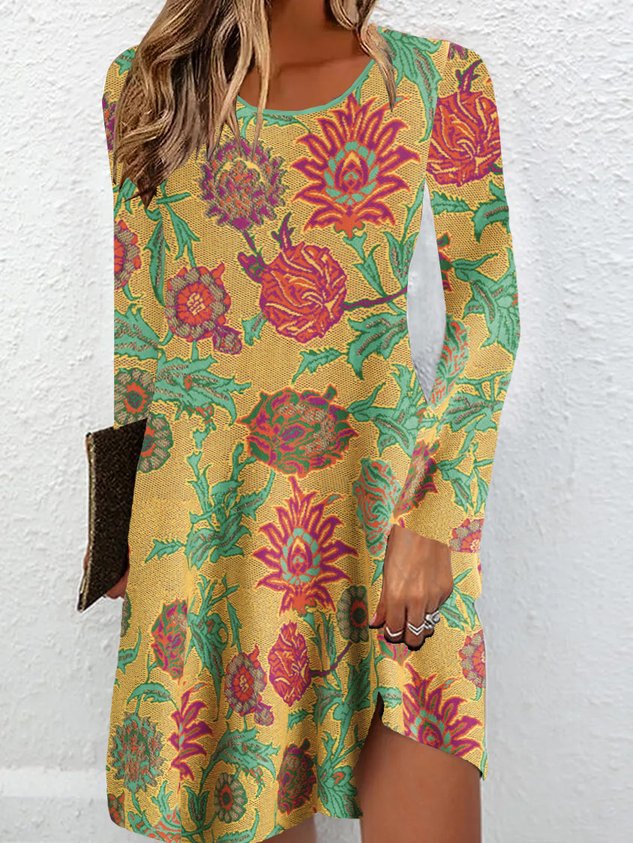 Casual Floral Jersey Loose Dress