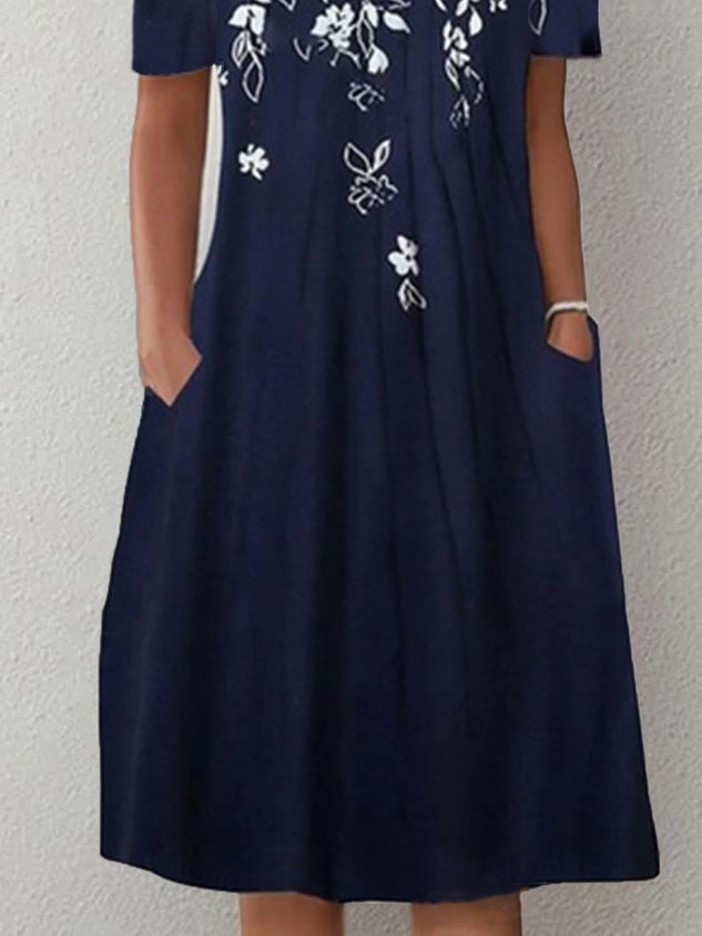 Floral Casual Short Sleeve Pockets A-Line Dress