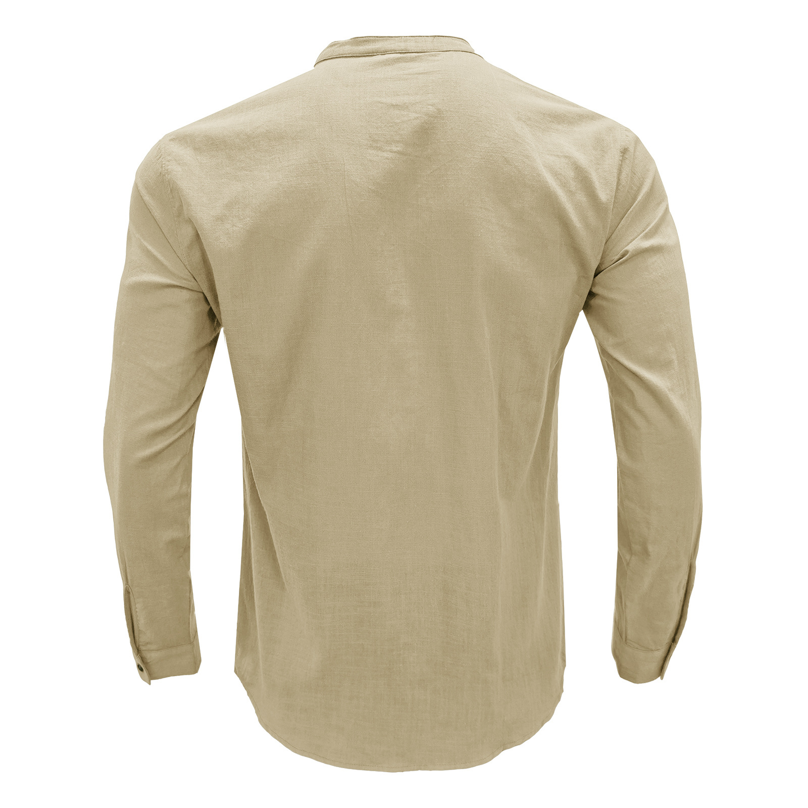 Langarm-Henry-Kragen-Oberteil lockeres Herren-Leinenhemd
