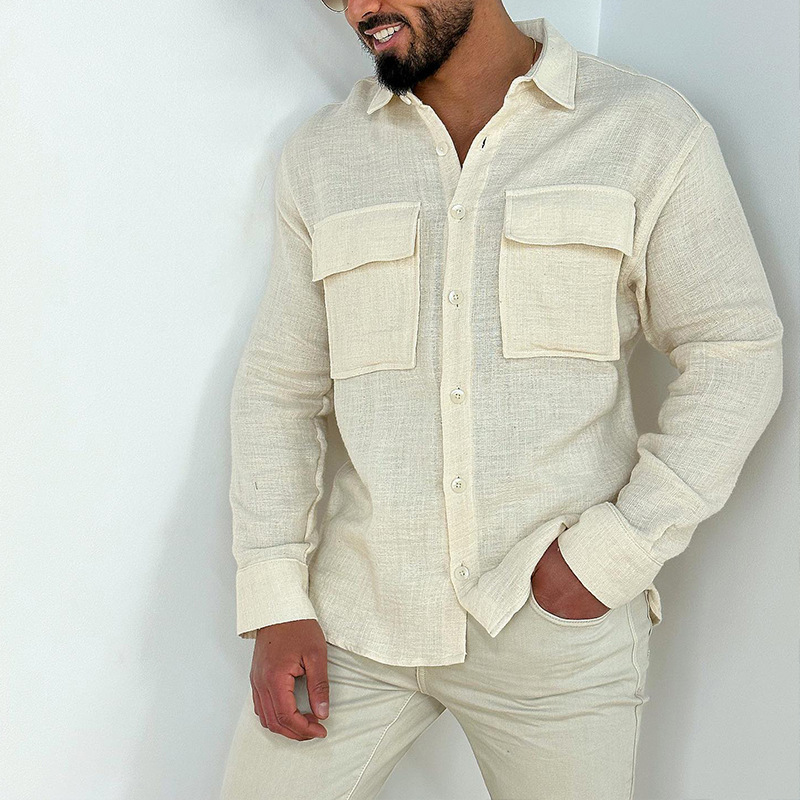 Baumwolle und Leinen Cardigan mit Fronttasche für Männer Großhandel