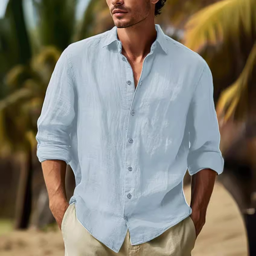Herrenhemd aus einfarbiger Baumwolle und Leinen