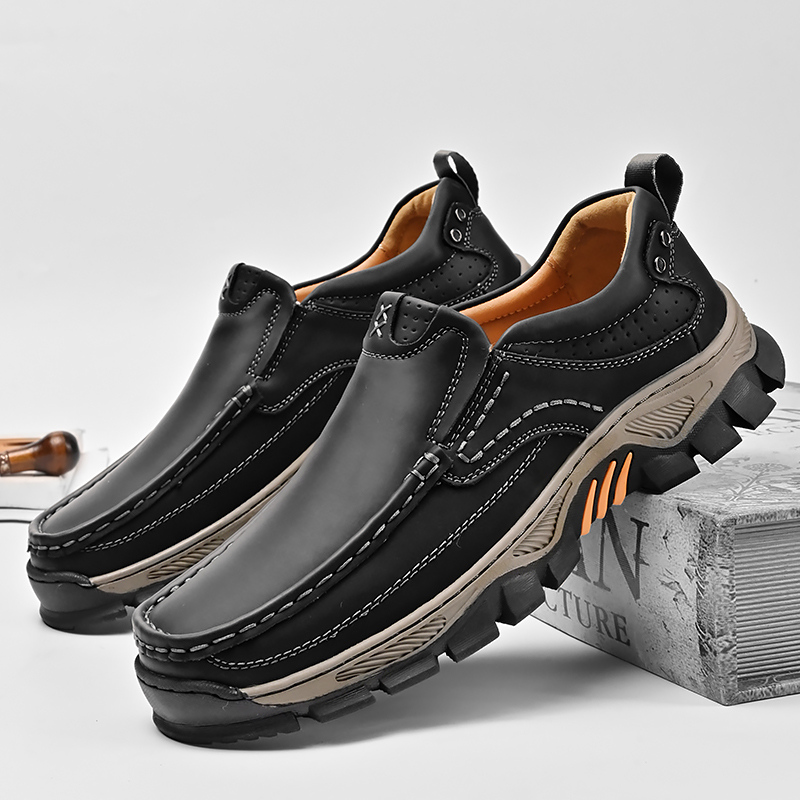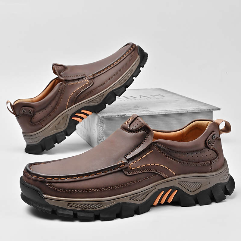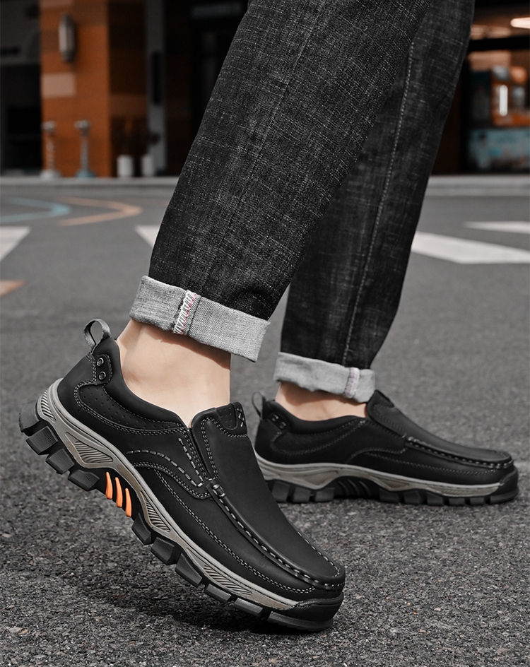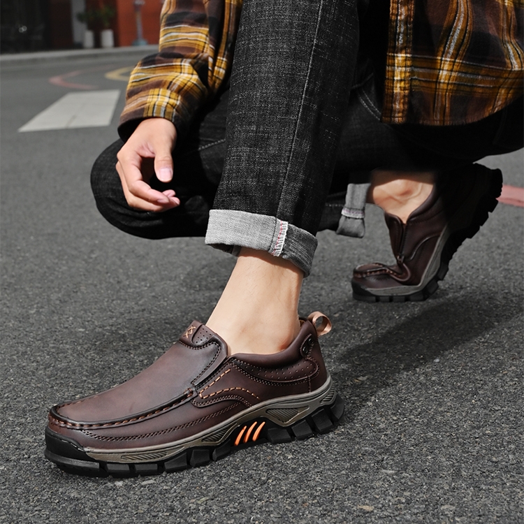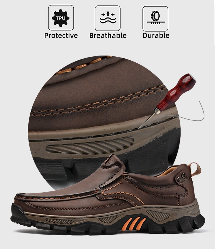 - ▶Echtes Leder 👞:Die hochwertige Lederoberfläche bietet hervorragende Atmungsaktivität und Flexibilität, sodass Ihre Füße trockener und bequemer sind. Die Lederoberfläche kann Verwindungen standhalten und verformt sich nicht, zudem ist sie kratzfest, um Ihnen ein besseres Erlebnis in Bezug auf ihre Haltbarkeit zu bieten.