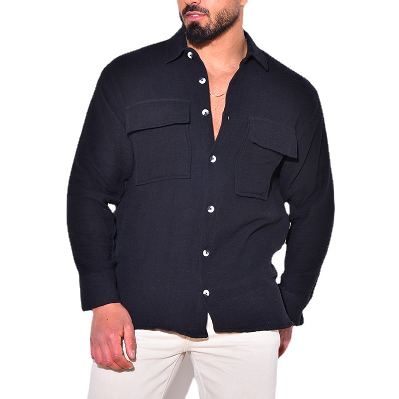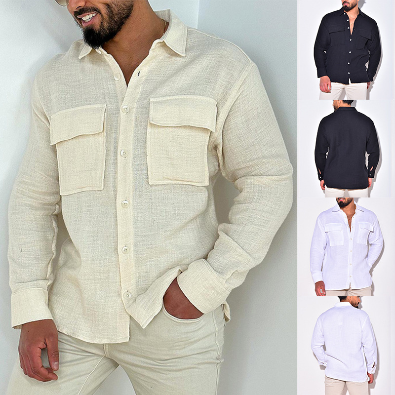 Baumwolle und Leinen Cardigan mit Fronttasche für Männer Großhandel