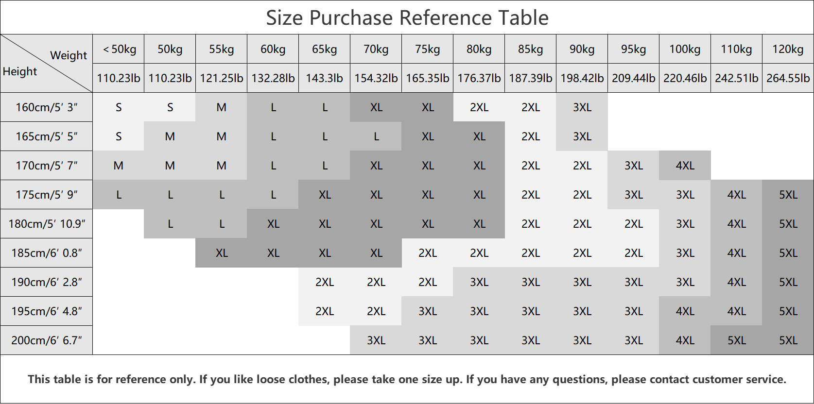 Notice: If you prefer a loose fit or have a big belly and wide shoulders, we recommend you go up one size.