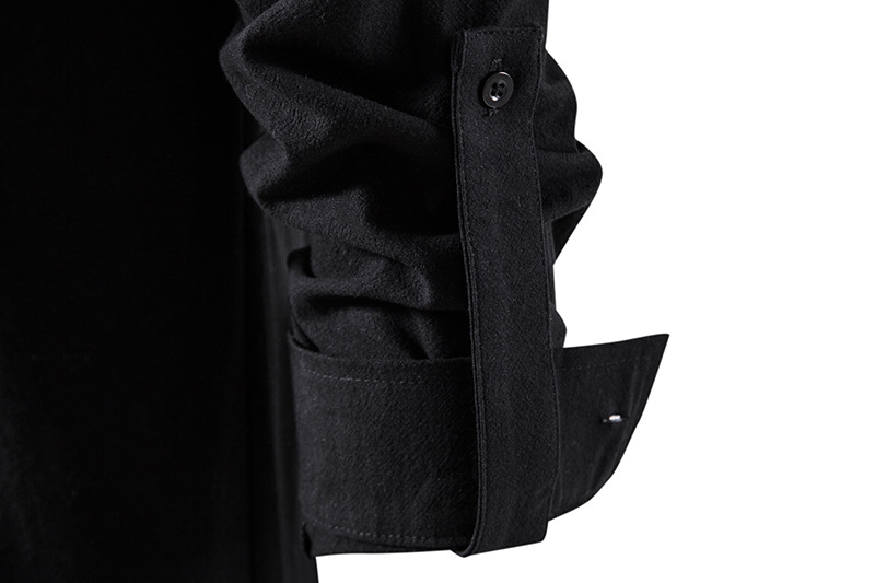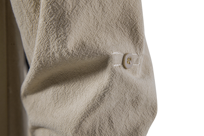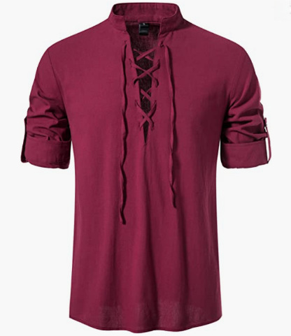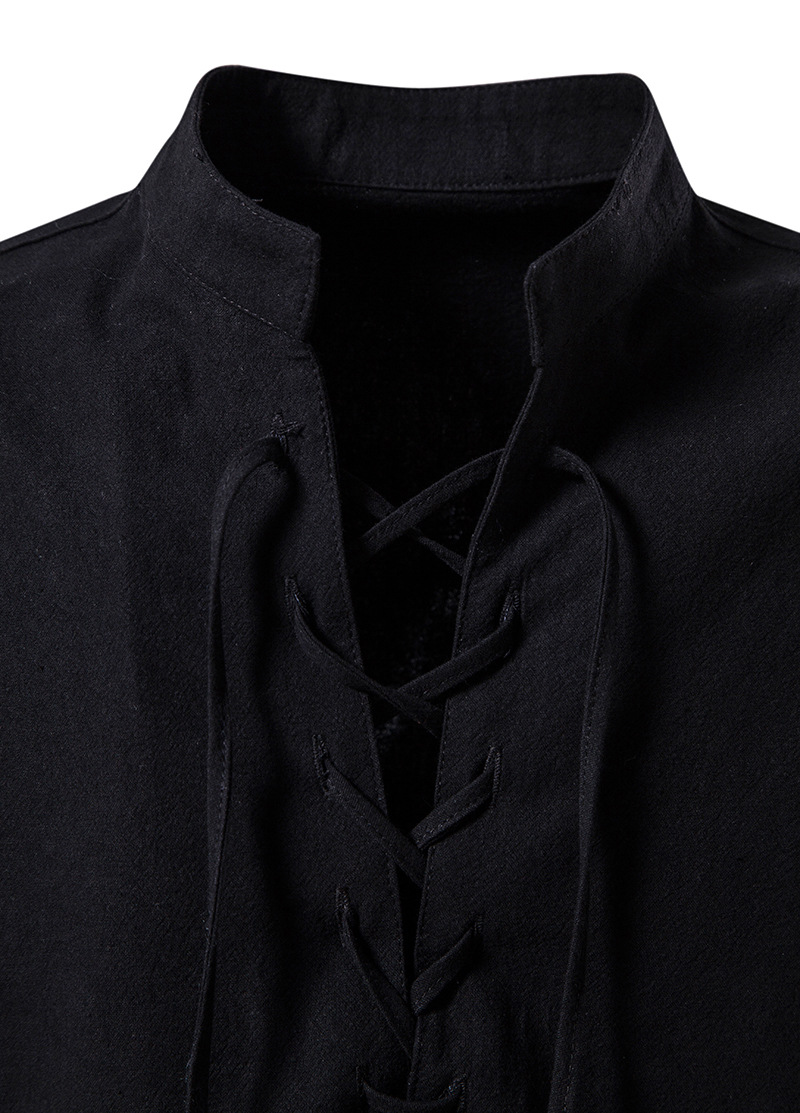 Cotton and Linen Henry Shirt Long Sleeve Hippie Casual Beach Collar Shirt European and American Cross-border Drawstring Shirt