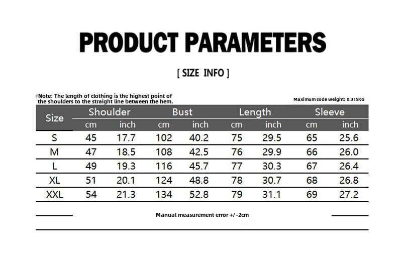 Accurate Fit:The shirt's error range of 1-2cm ensures a precise fit, enhancing your style quotient.