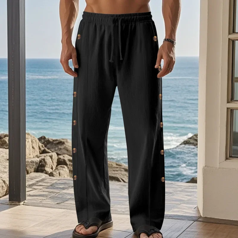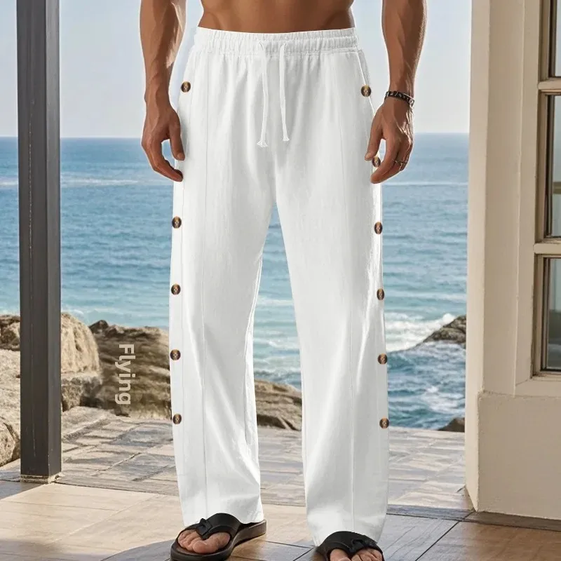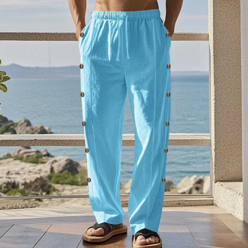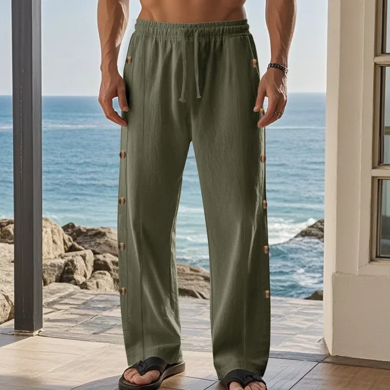 Breathable Cotton-Linen Material : Crafted from a blend of cotton and linen, these pants offer superior breathability, keeping you cool during warmer days.