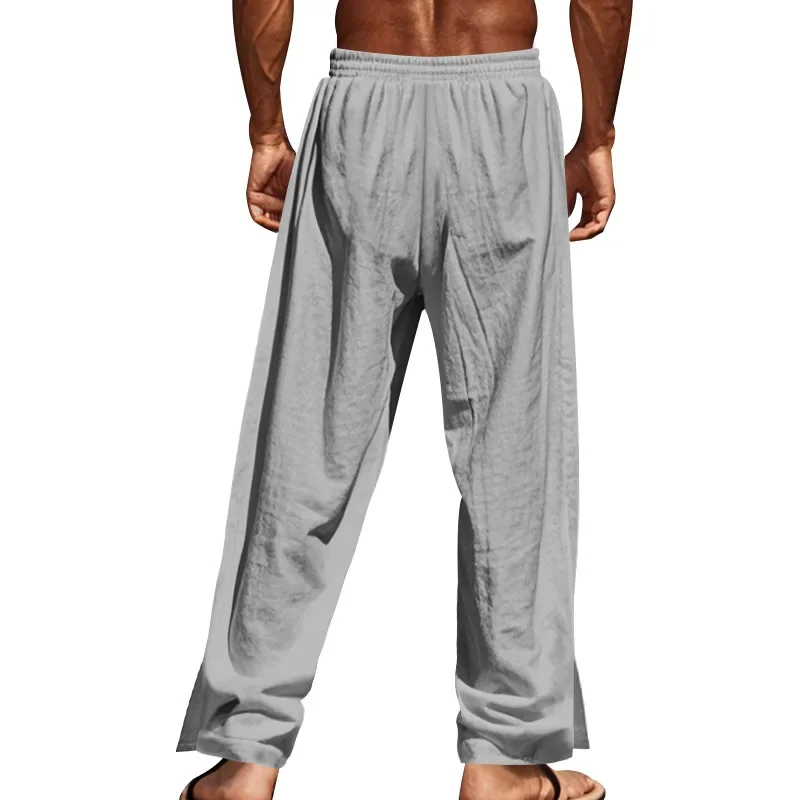 Cotton Linen Pants Autumn Men's Drawstring Elastic Waist Solid Color Breathable Comfortable Daily Casual Pan