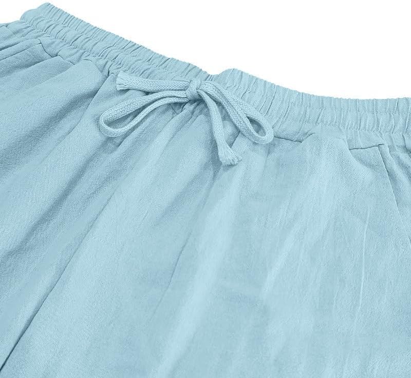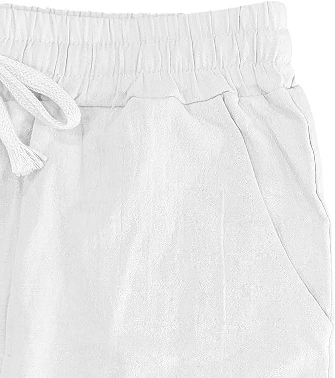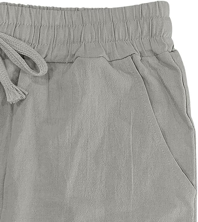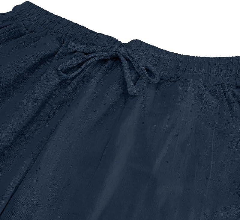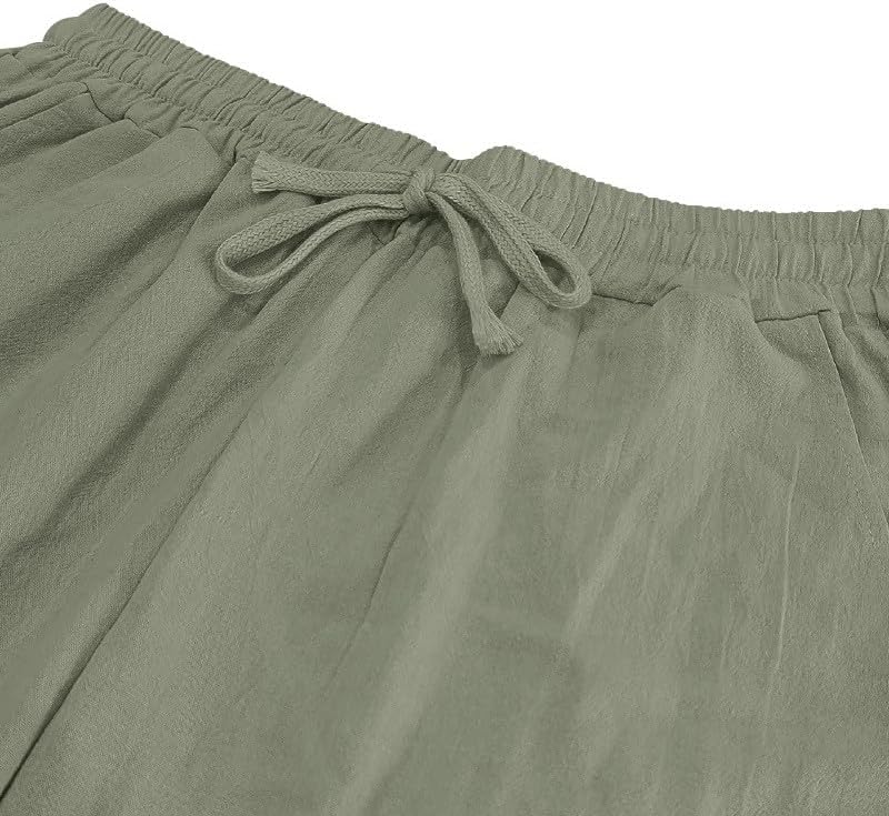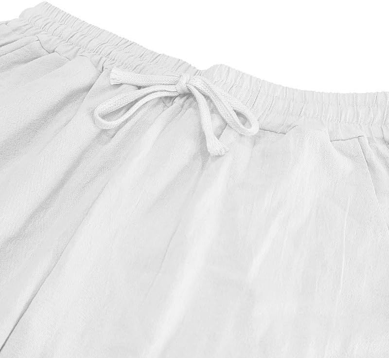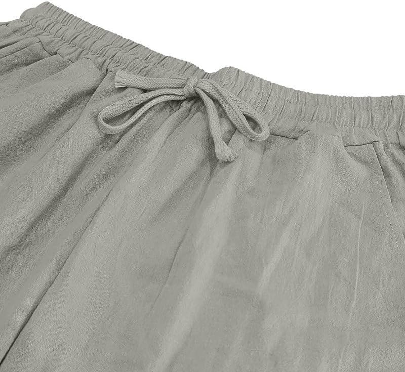 Linen Pants Men Lightweight with Pockets Drawstring Elastic Waist Straight Legs Lounge Pants Casual Cotton Pants