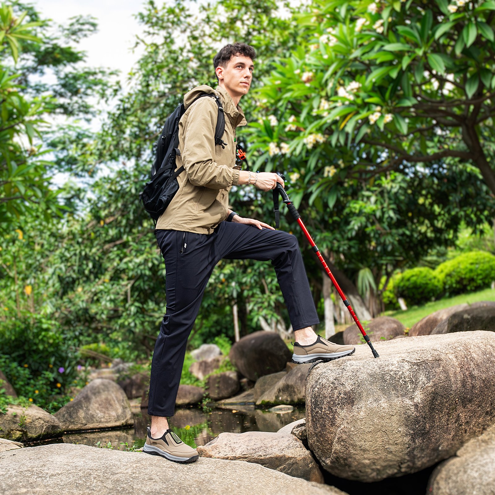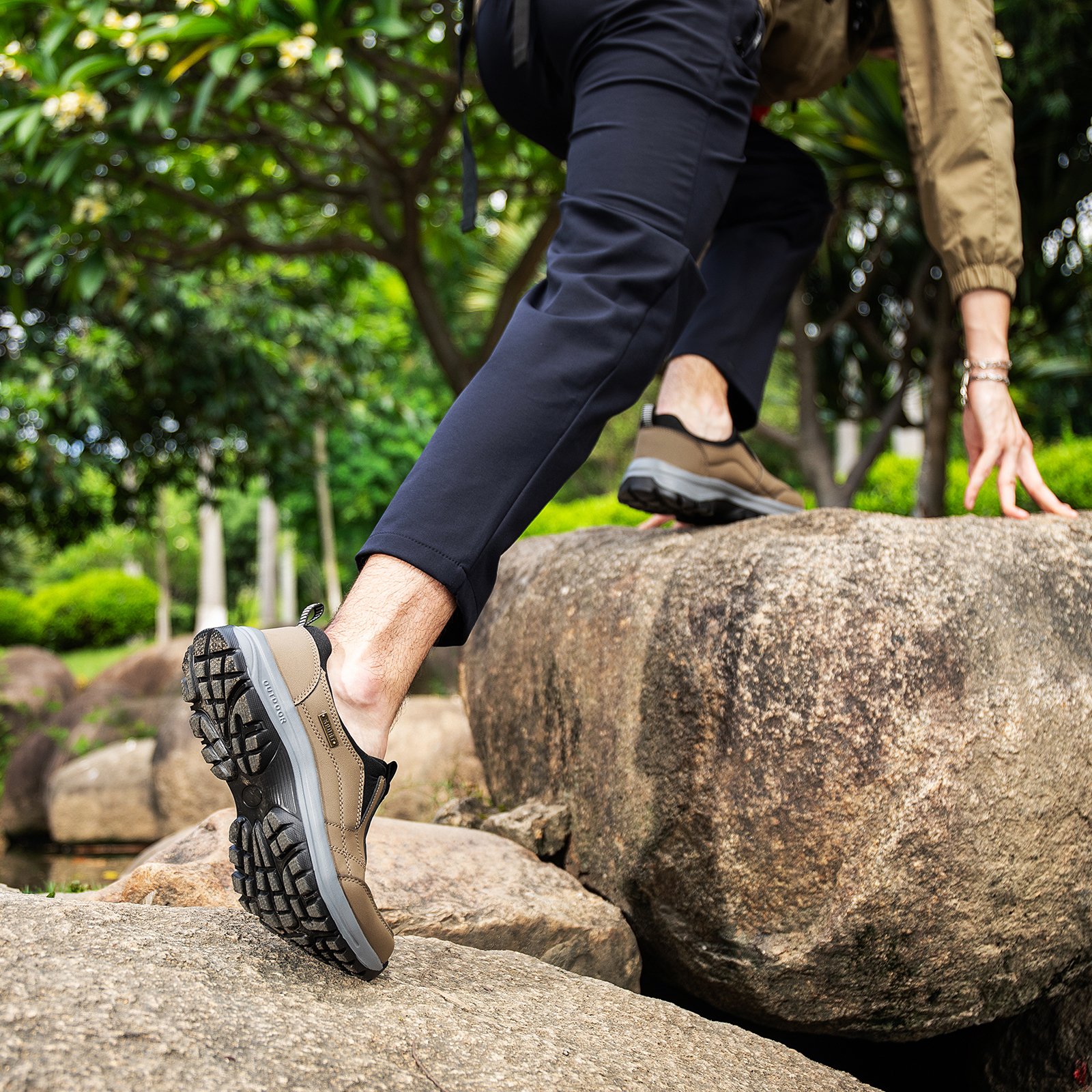 Excellent grip and stability:our rubber outsole improves grip and durability on variable and rugged terrain, and the fork shank ensures flexible and stable movement. The laceless design provides a comfortable and secure fit.