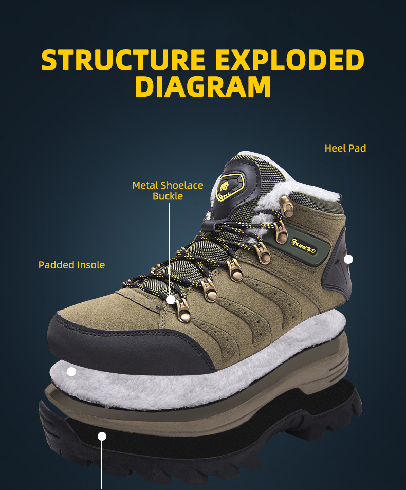 Experience unparalleled comfort with our men's comfortable and insulated hiking shoes, featuring insulated insoles that provide extra warmth. The soft and cozy lining ensures your feet stay warm and comfortable, making these shoes ideal for cold weather hikes. Embrace the joy of wearing shoes that keep your feet comfortable and snug, no matter the temperature.