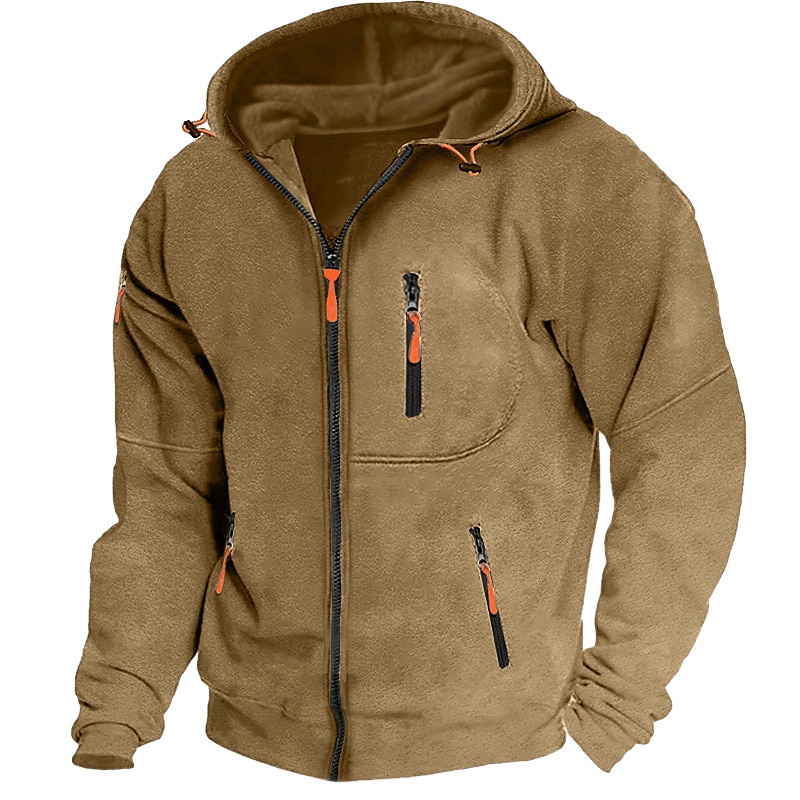 Gender:Men's,Style:Casual,Streetwear,Cool,Tactical,Occasion:Daily,Sports & Outdoor,Holiday,Sports Clothing Sub Category:Fleece Hoodie,Full Zip Hoodie,Hoodie,Neckline:Hooded,Fabric:Polyester,Design:Zipper,Pocket,Sleeve Length:Long Sleeve,Elasticity:Micro-elastic,Look After Me:Wet and Dry Cleaning,Washable,Pattern:Plain,Season:Spring & Fall,