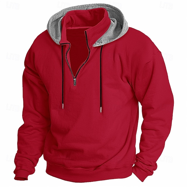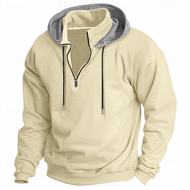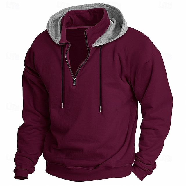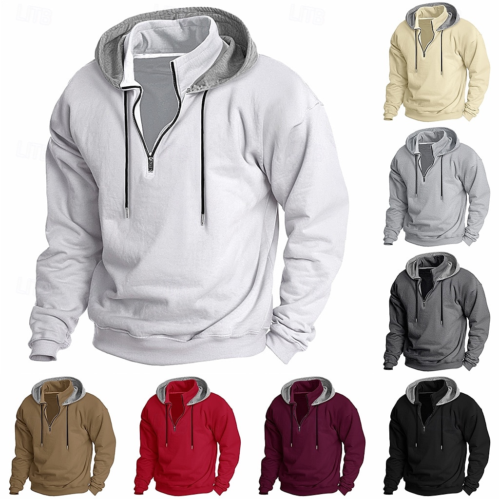 Gender:Men's,Style:Basic,Casual,Streetwear,Tactical,Occasion:Streetwear,Work,Sports & Outdoor,Daily,Casual,Sports Clothing Sub Category:Quarter Zip Hoodie,Hoodie,Fleece Hoodie,Tactical Hoodie,Neckline:Hooded,Fabric:Polyester,Design:Patchwork,Half Zip,Sleeve Length:Long Sleeve,Elasticity:Micro-elastic,Pattern:Plain,Season:Spring & Fall,Cross-Seasons,