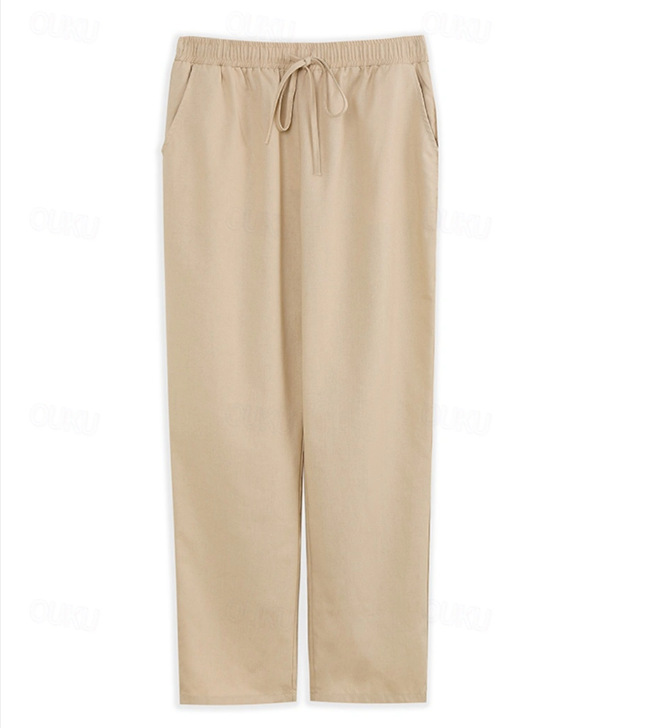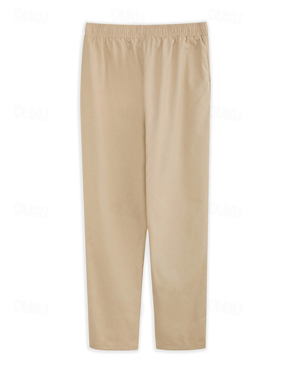 men's linen pants pull elastic waist comfortable breathable beach fashion simple trousers
