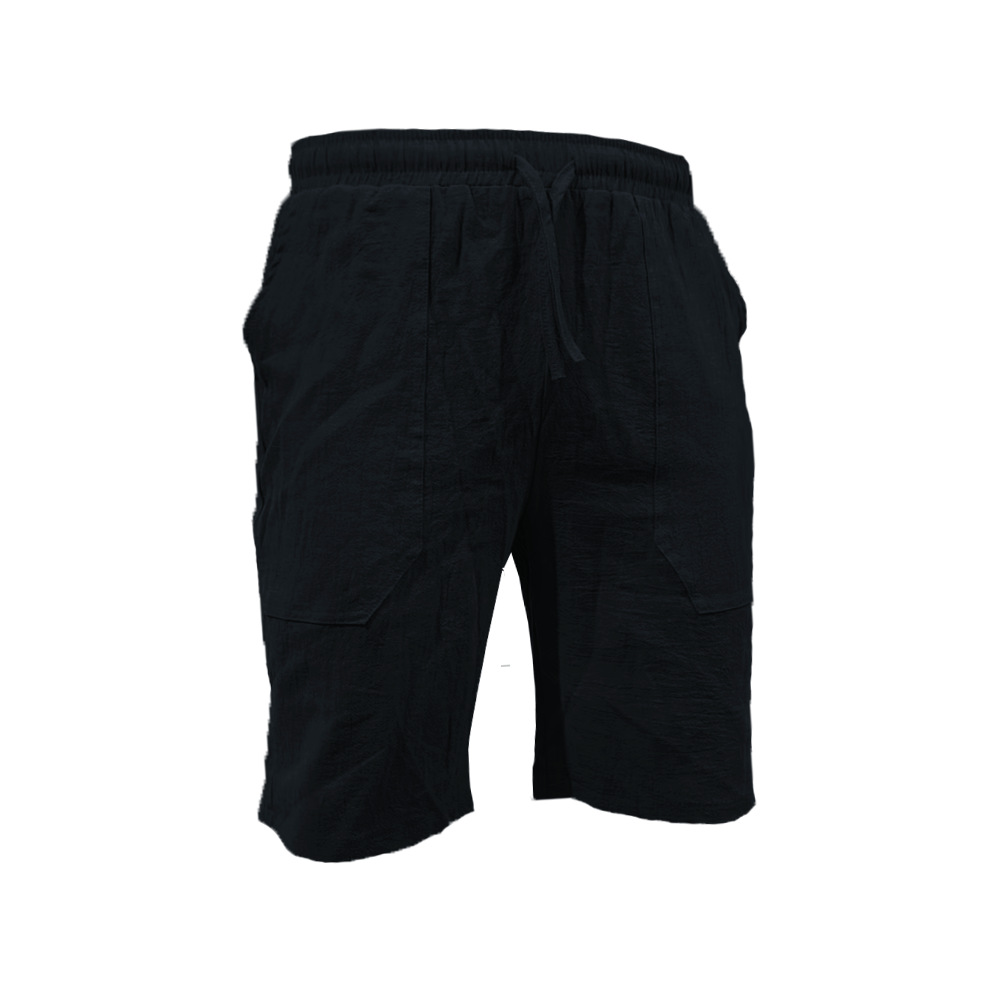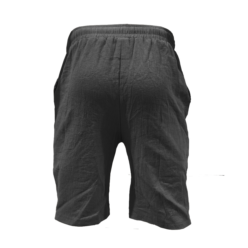 Men's Solid Color Five-point Casual Shorts Drawstring Breathable Beach Pants Cotton and Linen Sports Shorts