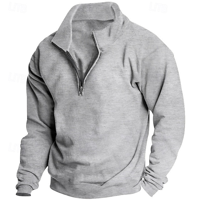Gender:Men's,Style:Basic,Casual,Streetwear,Thin fleece,Occasion:Sportswear,Going out,Sports & Outdoor,Holiday,Daily,Sports Clothing Sub Category:Quarter Zip Sweatshirt,Sweatshirt,Tops Type:Basic Sweatshirts,Neckline:Half Zip,Fabric:Polyester,Sleeve Length:Long Sleeve,Elasticity:Micro-elastic,Look After Me:Wet and Dry Cleaning,Washable,Pattern:Plain,Season:Fall & Winter,