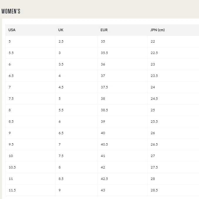 | US(women) | Foot length (cm) | Foot width (Width) | EU | UK |