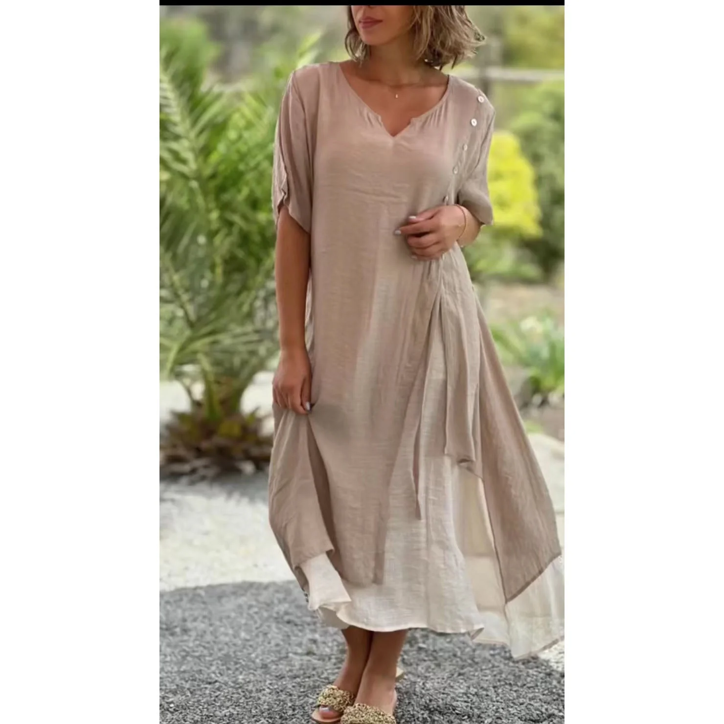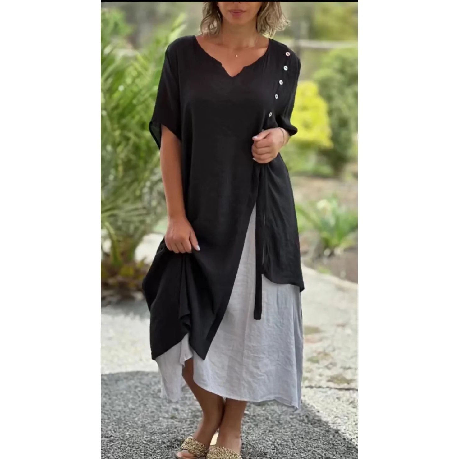 - Caracteristici: Decolteu in V, nasturi, doua piese false, tiv asimetric, materialul este confortabil si la moda.