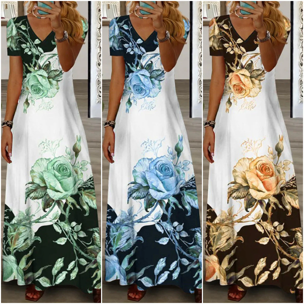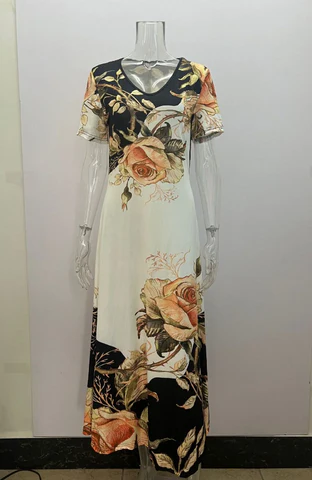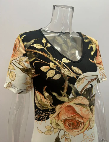- Caracteristici: Textura draping, imprimare cu flori, tunderea taliei pentru a modifica forma taliei, materialul este confortabil si la moda.
