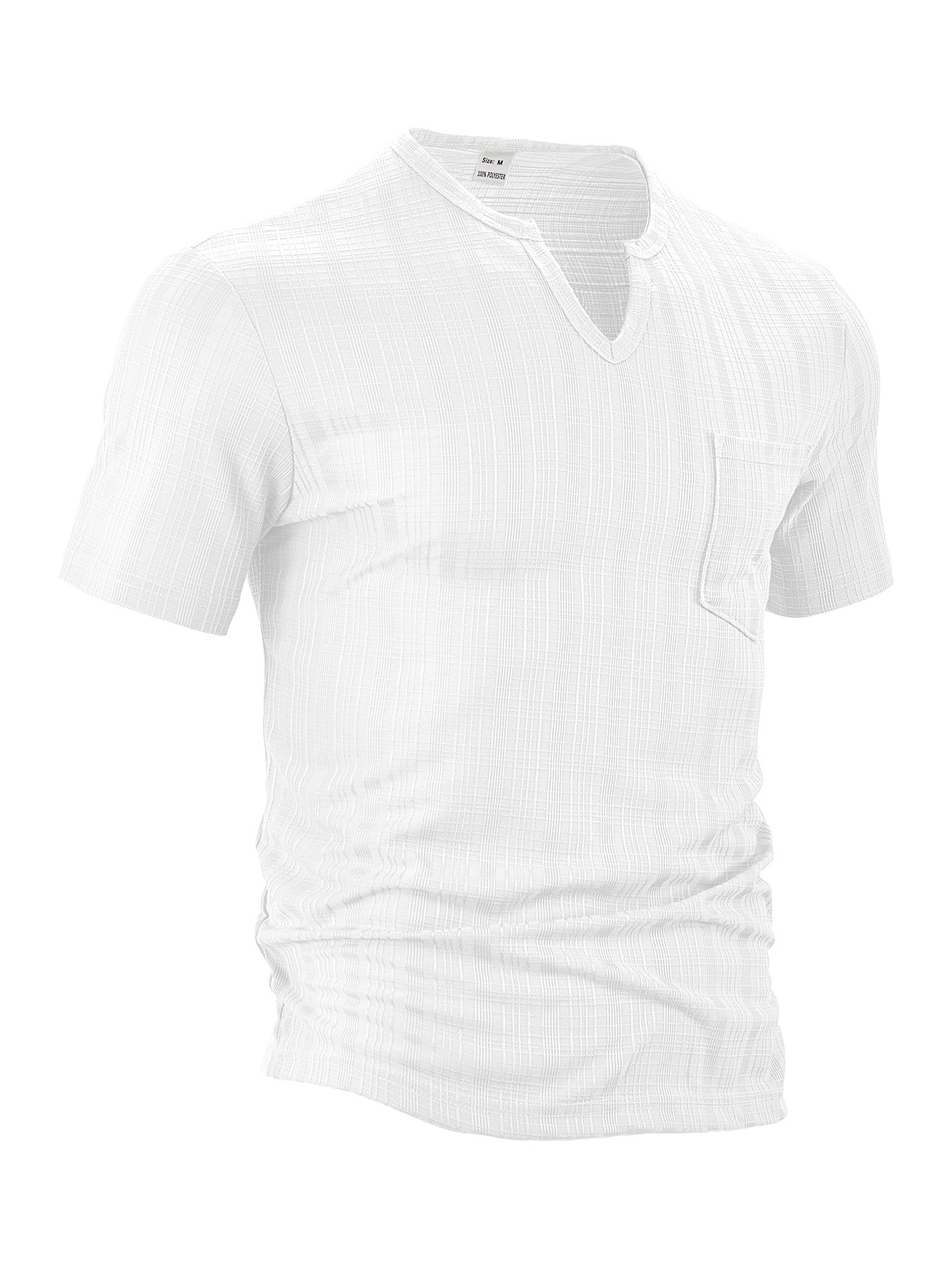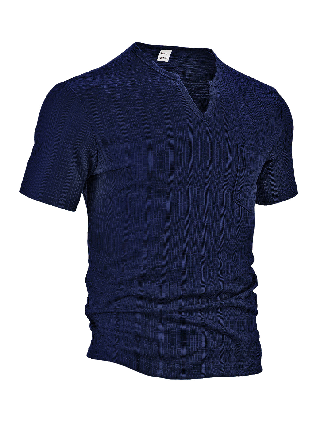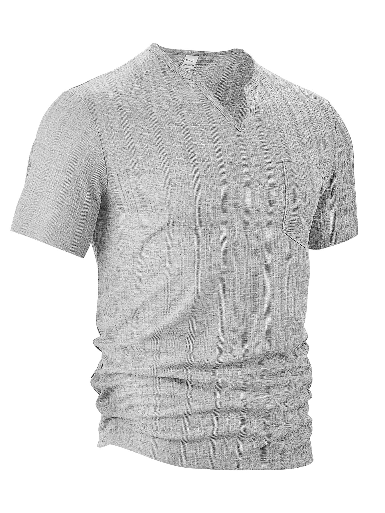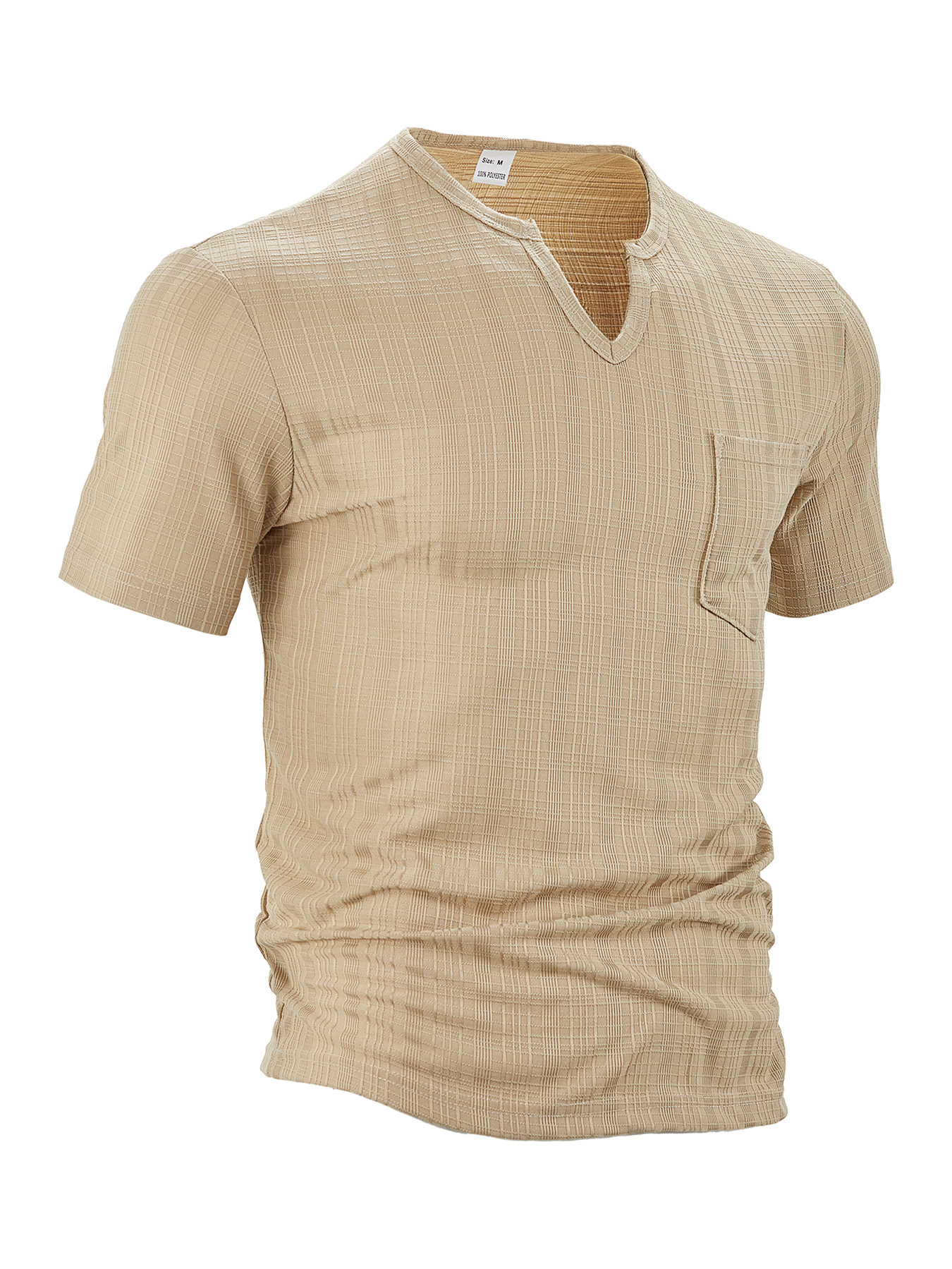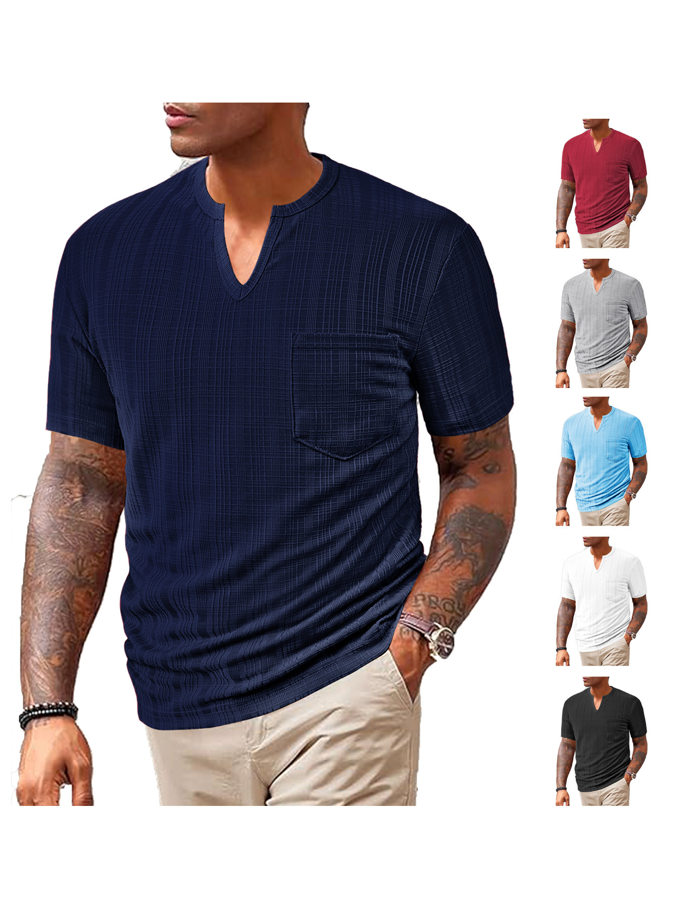 25年跨境男装 欧美夏季新款运动休闲宽松纯色全涤仿麻V领男士短袖