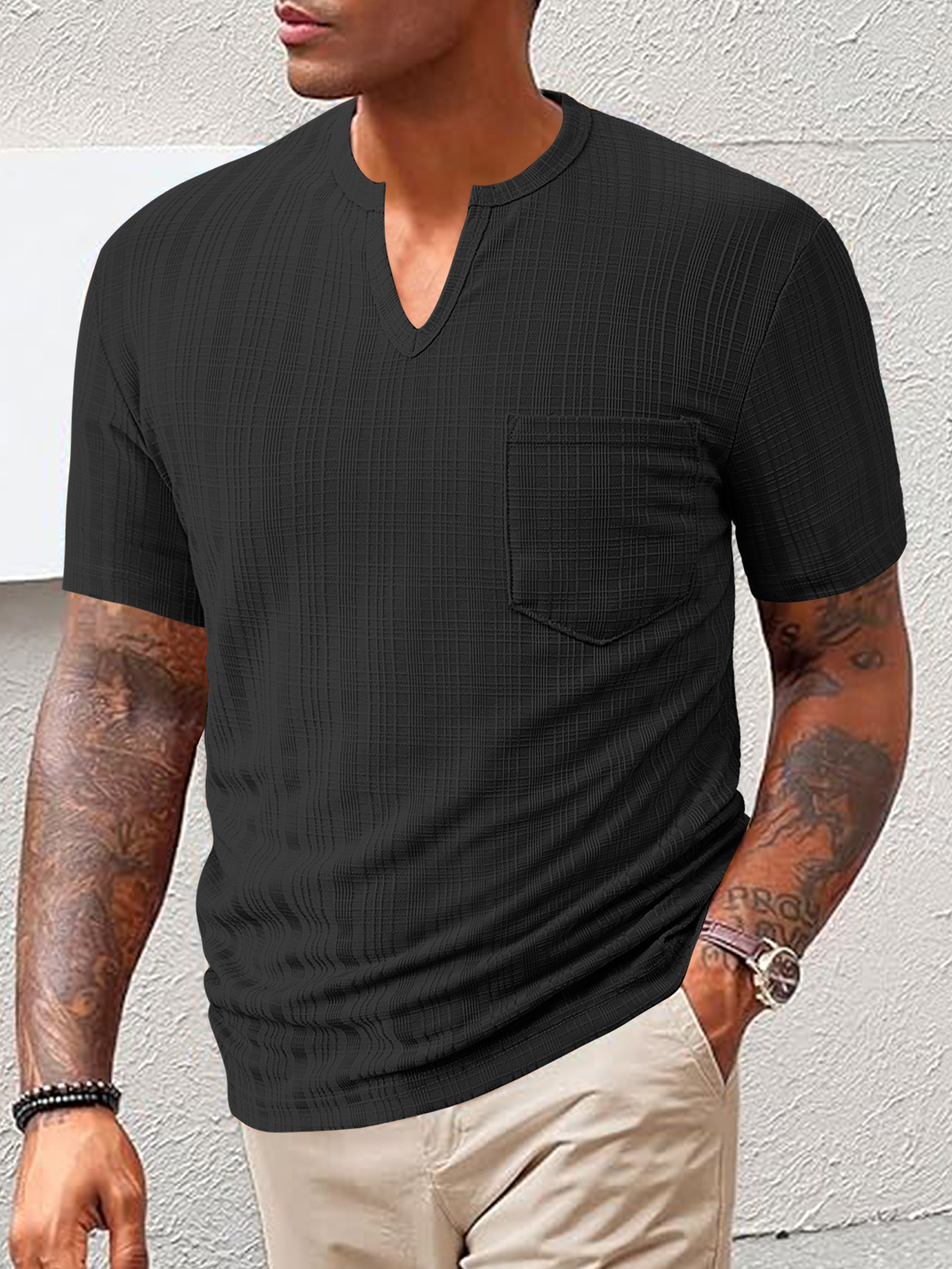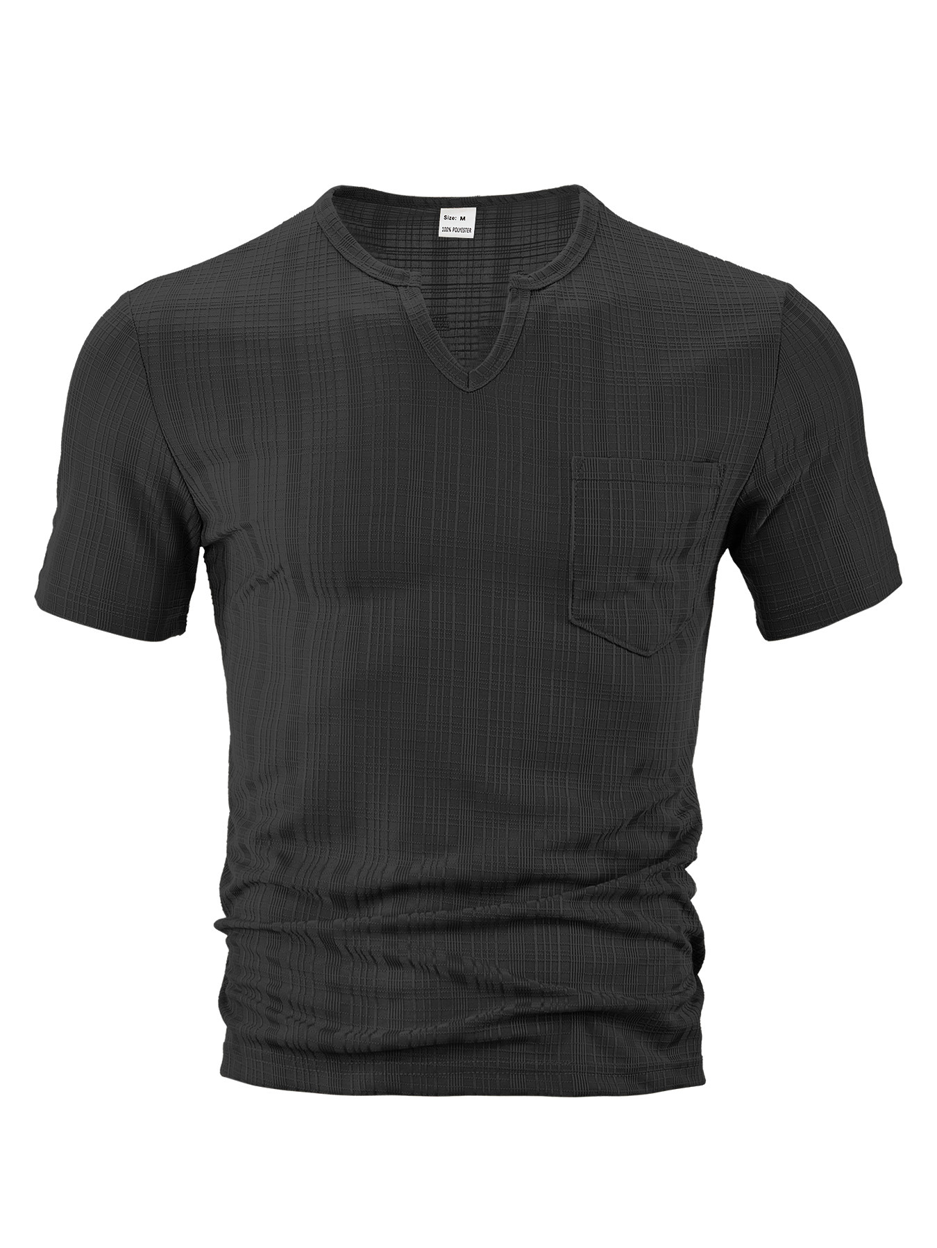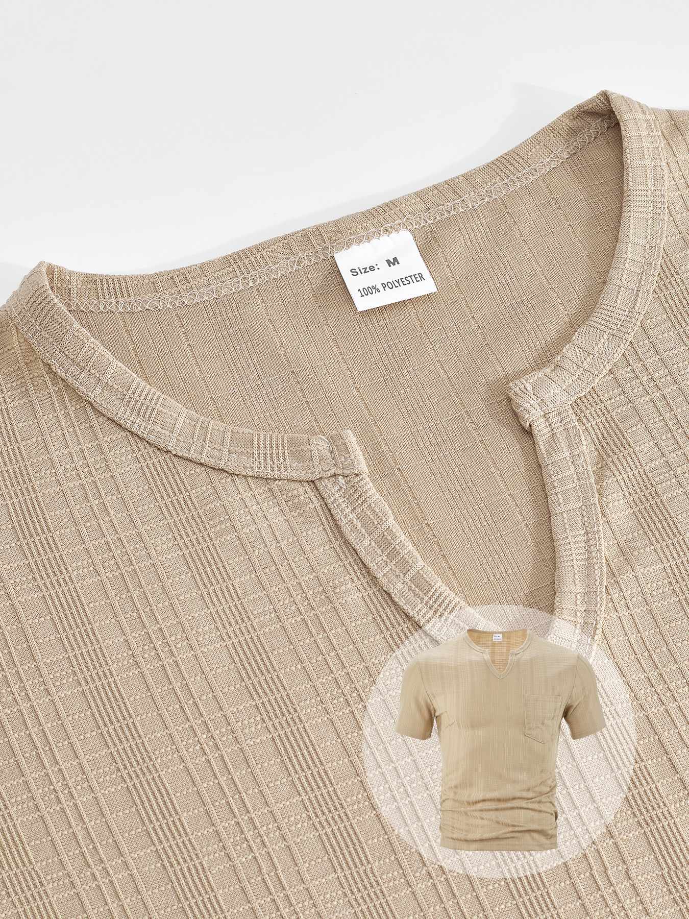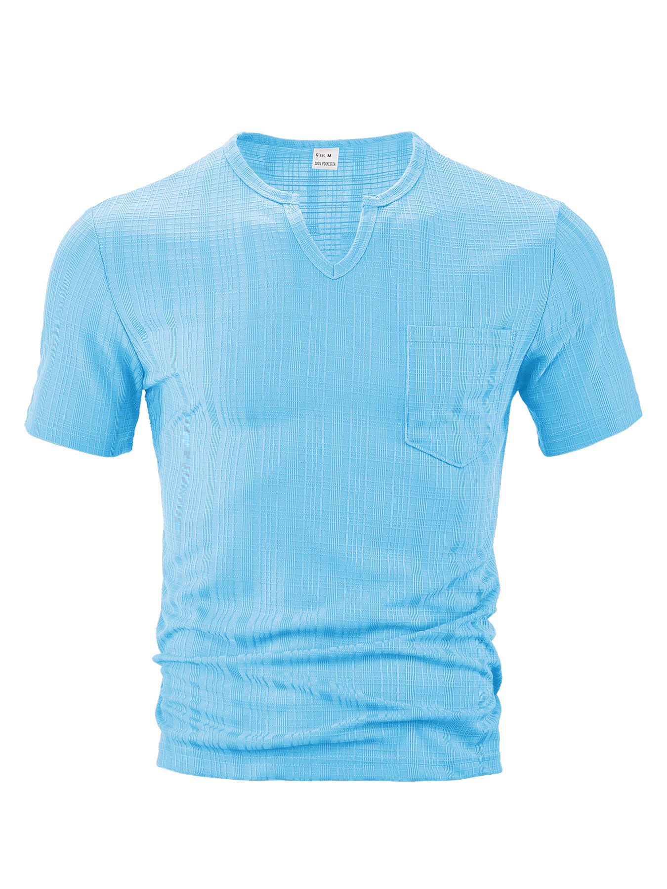 25年跨境男装 欧美夏季新款运动休闲宽松纯色全涤仿麻V领男士短袖
