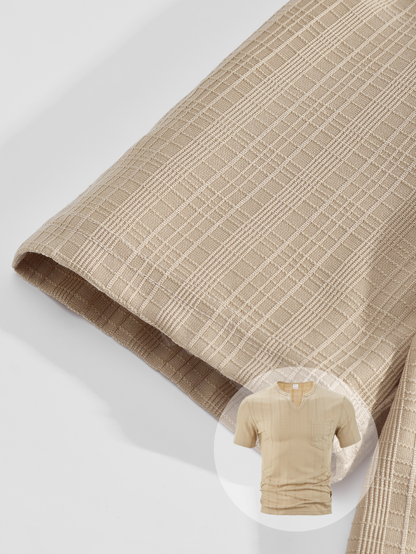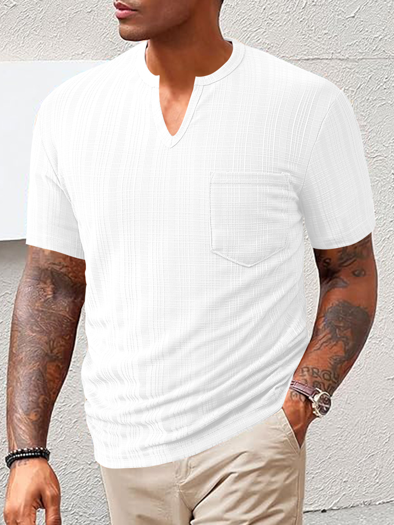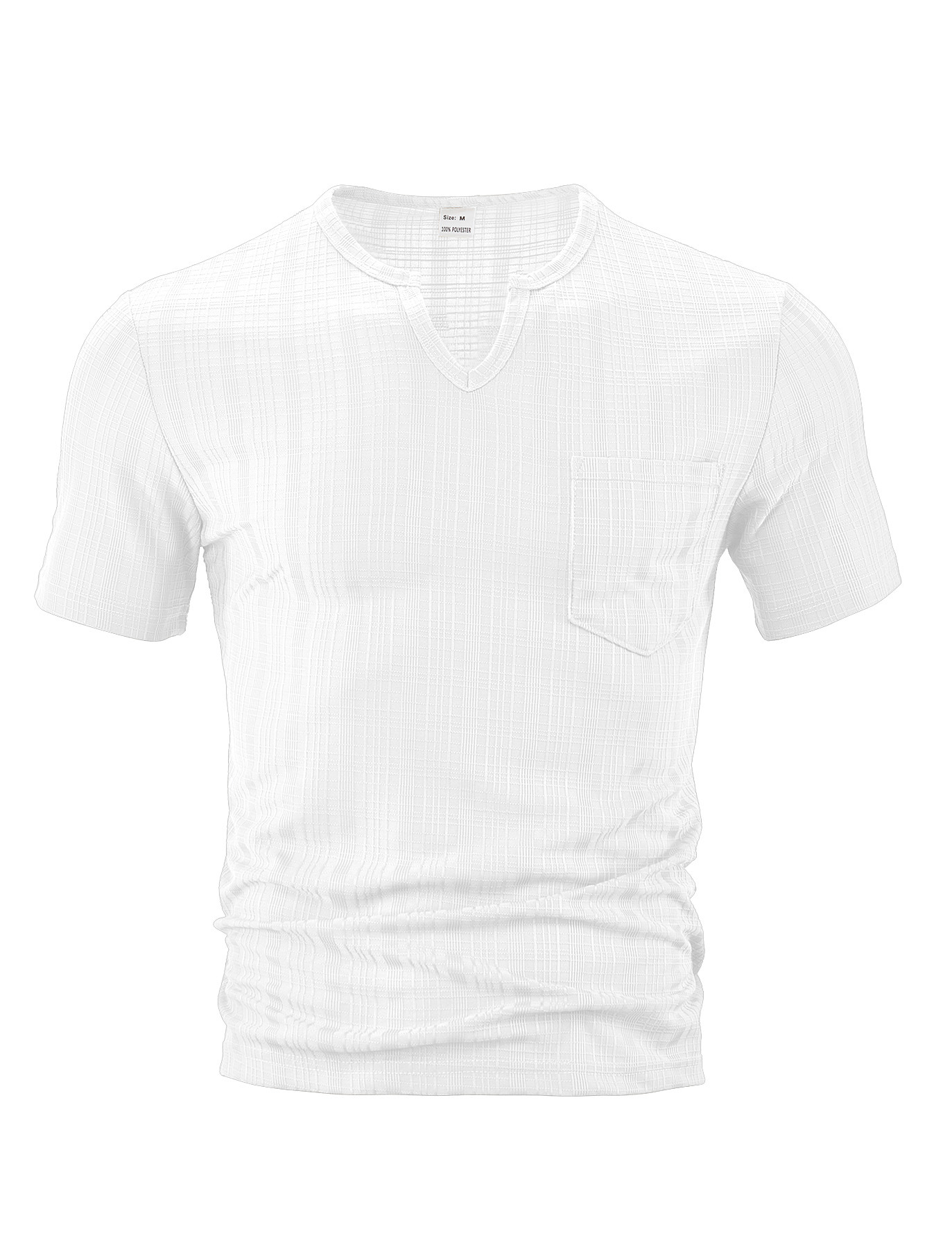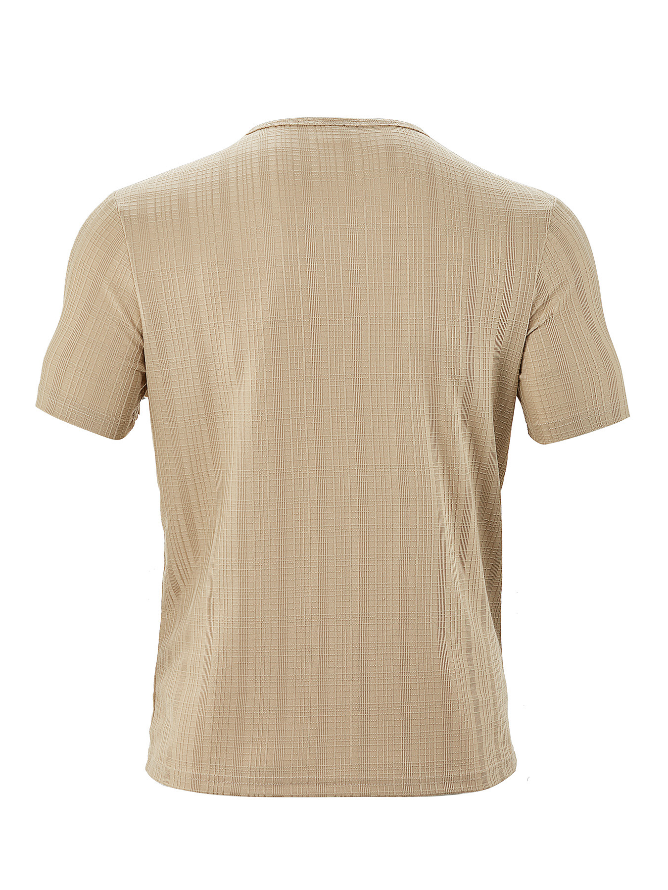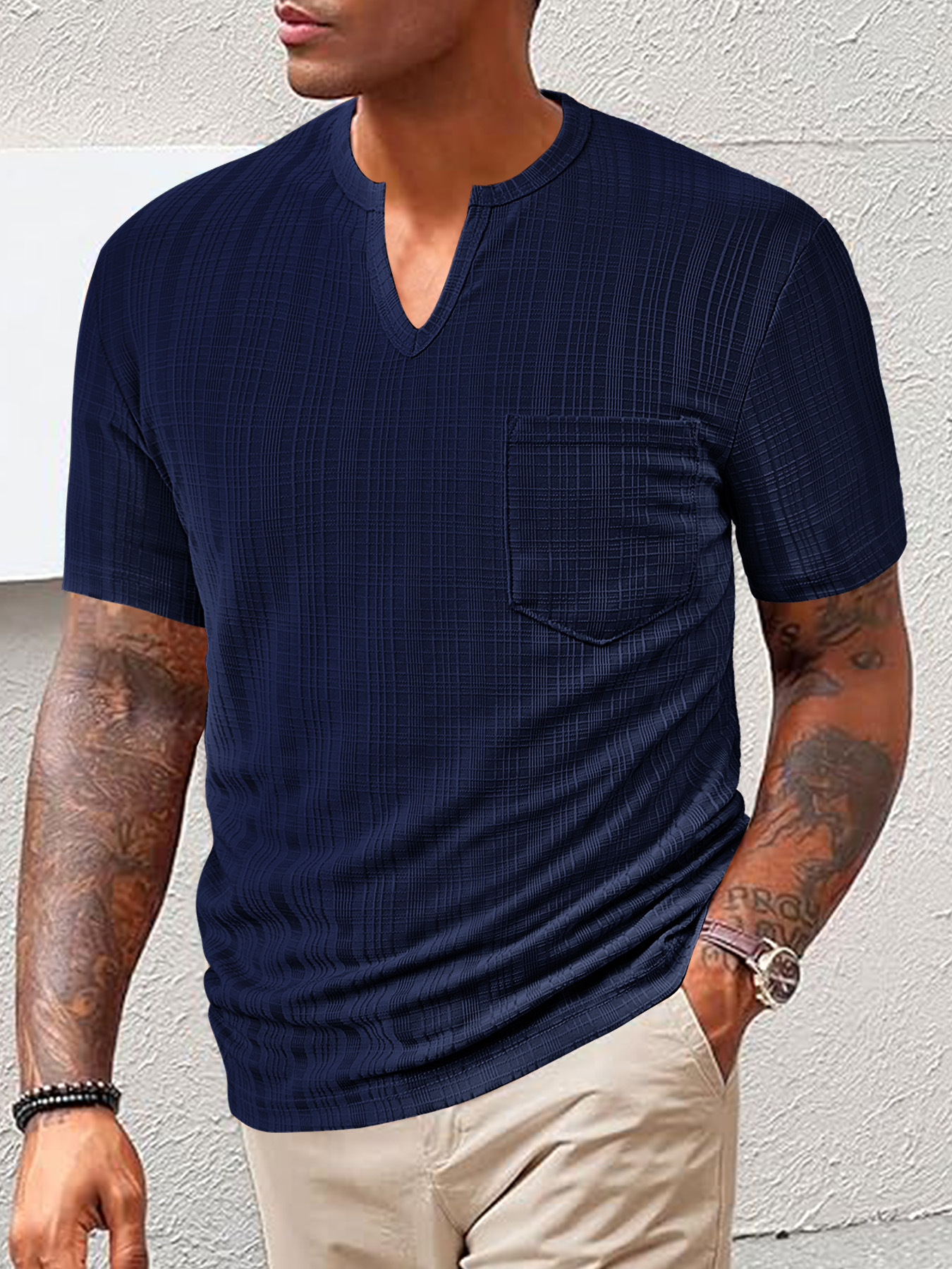 25年跨境男装 欧美夏季新款运动休闲宽松纯色全涤仿麻V领男士短袖