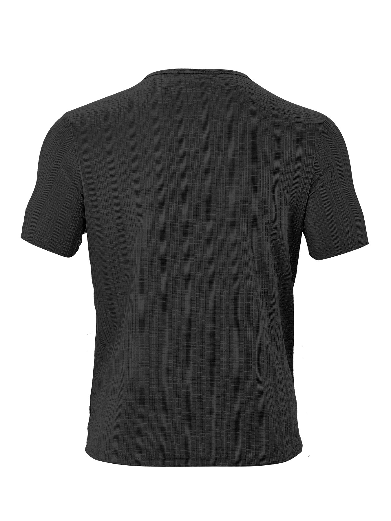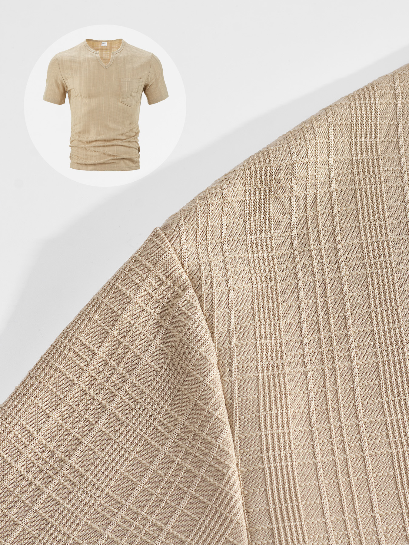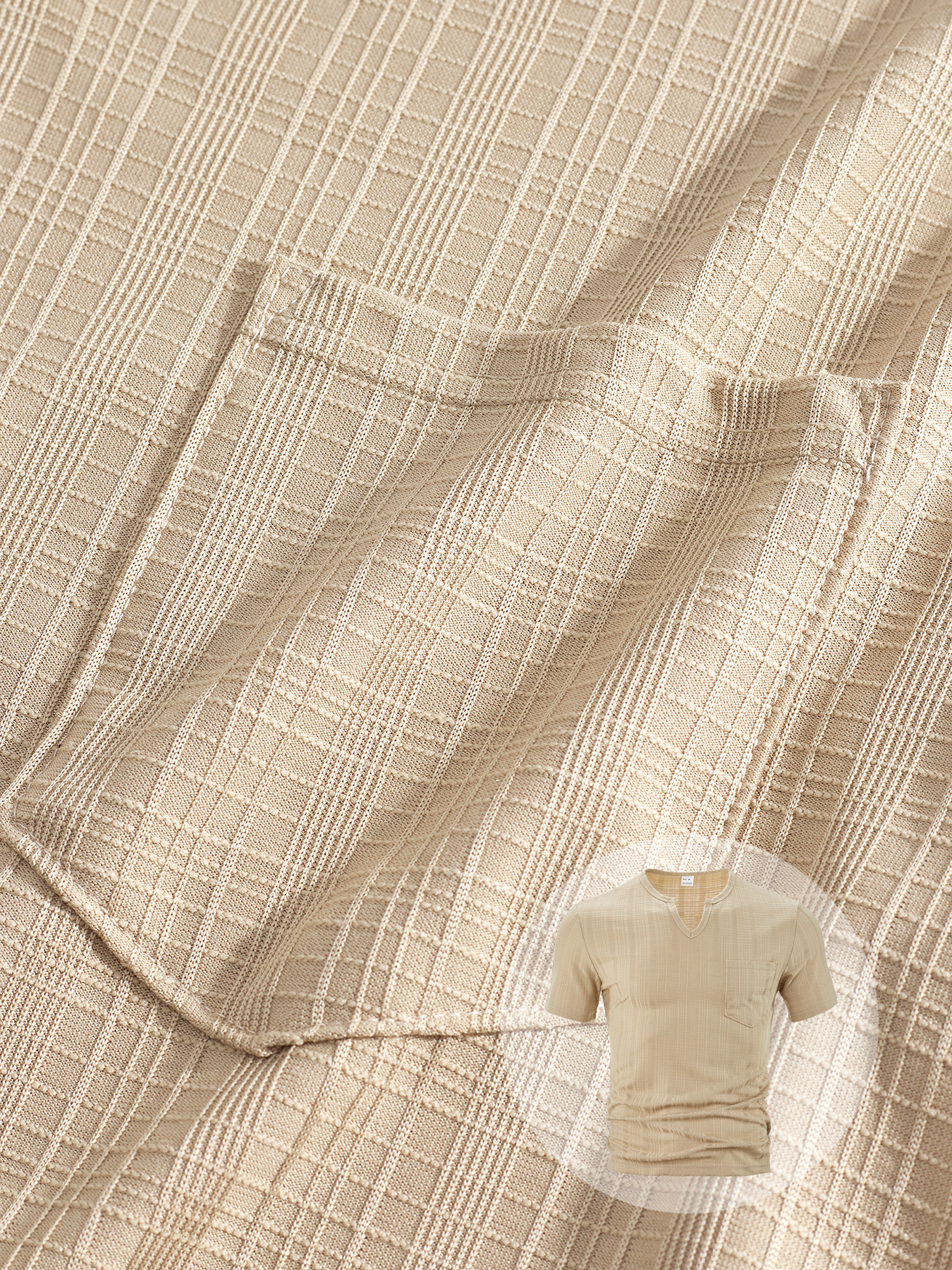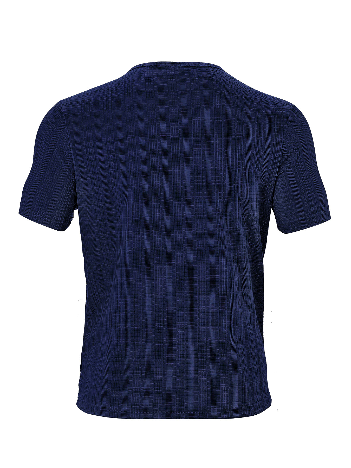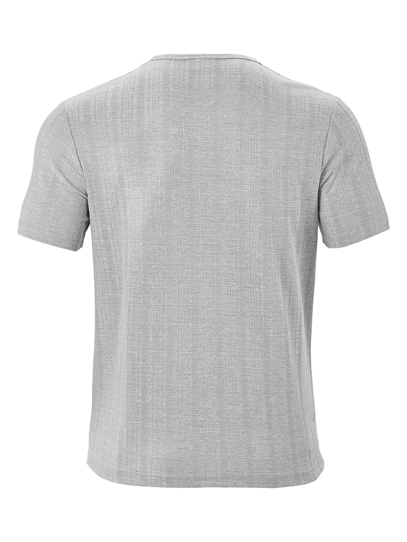 25年跨境男装 欧美夏季新款运动休闲宽松纯色全涤仿麻V领男士短袖