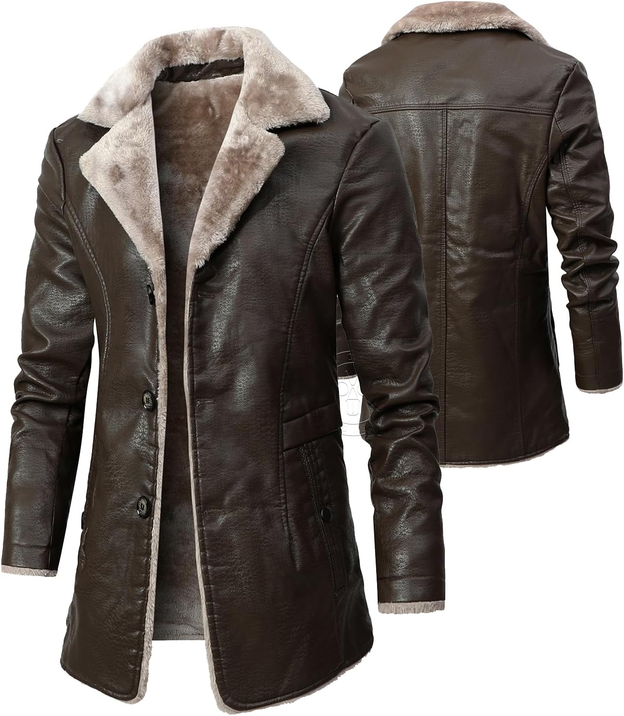 Mens PU Leather Long Jackets Faux FleeceTrench Coats Heavyweight Button Up Motorcycle Bomber Jacket Winter Warm