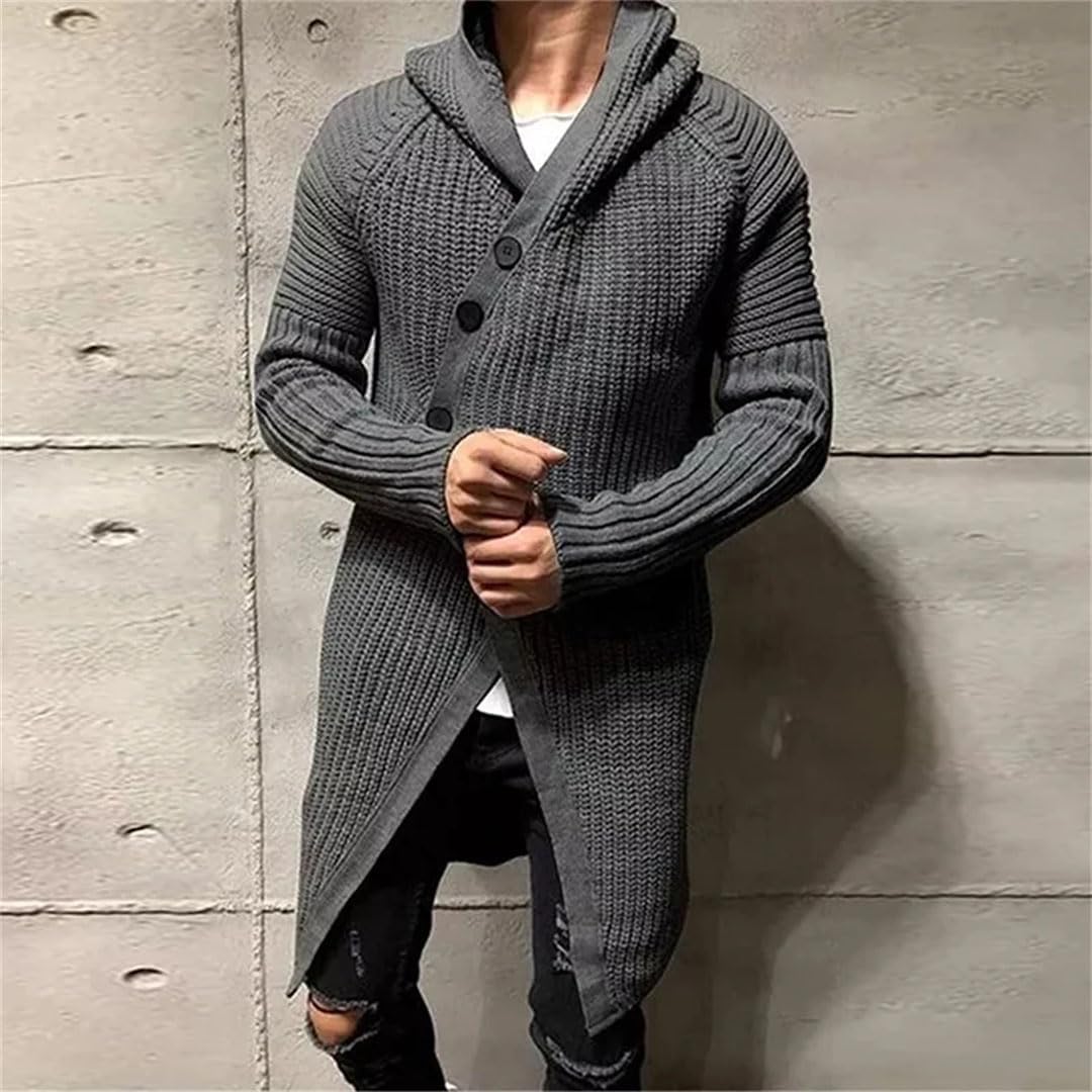 Men's Button Up Long Sweater Overcoat Men's Winter Autumn Long Sleeve Knit Hooded Cardigan Coat
