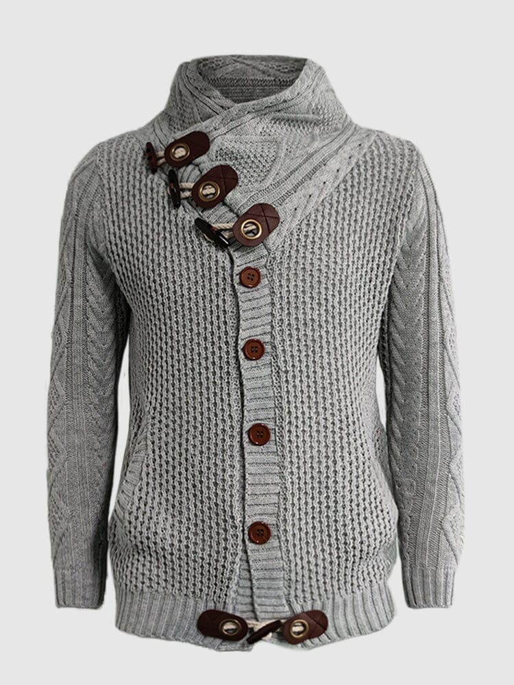 Detail:Fold turtleneck design, wooden horn buttons, 2 hand pockets