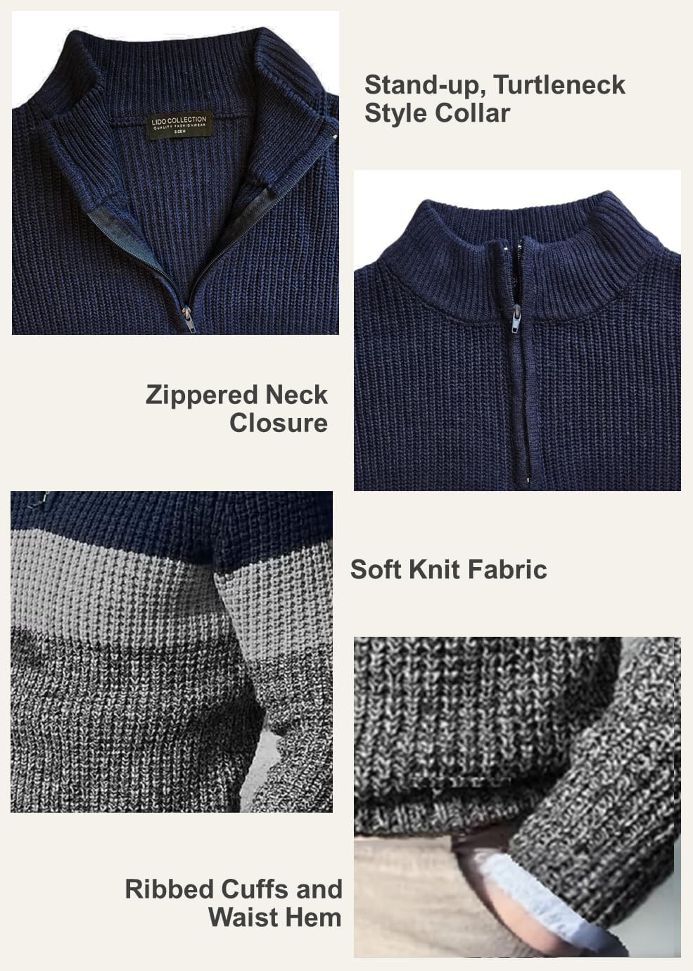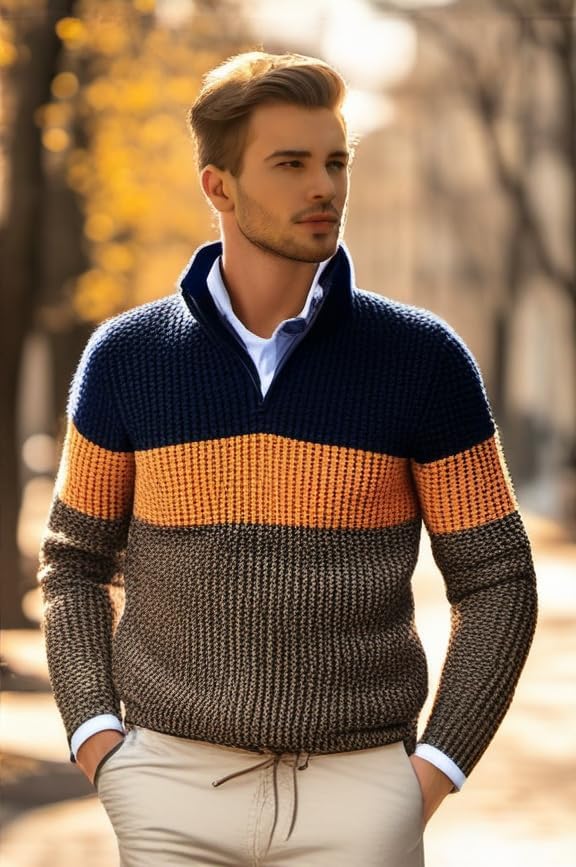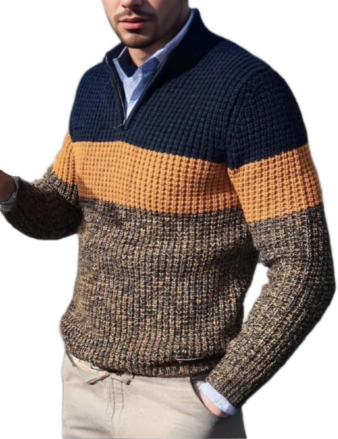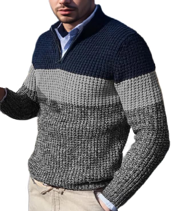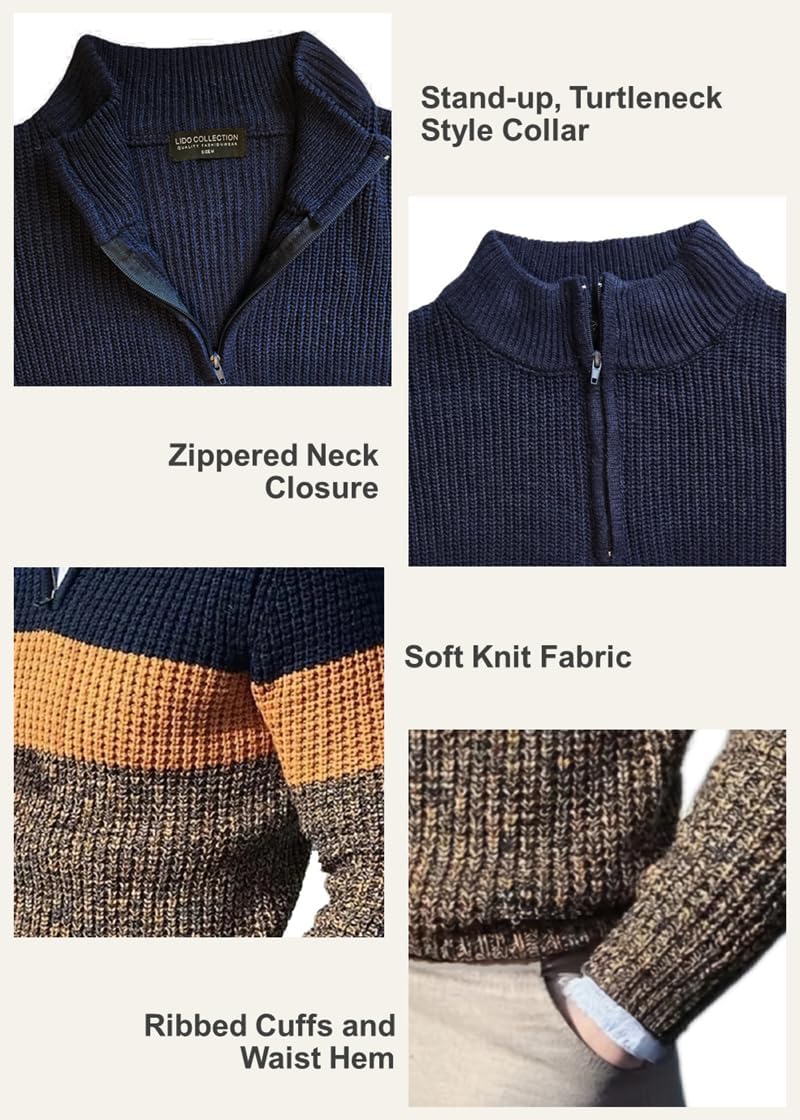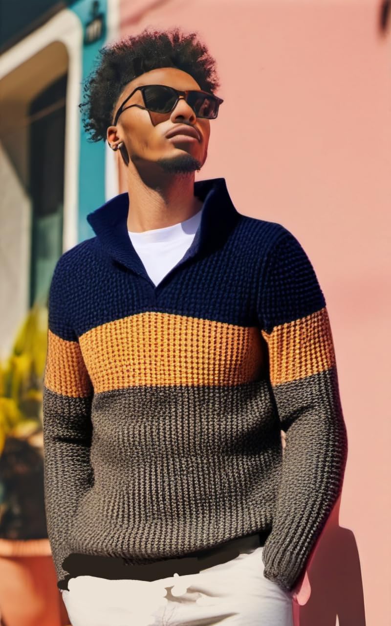 Classic Fit: This men's quarter zip pullover sweater features a casual fit for comfort, mix of horizonnal solid and knitted textured colors, 1/4 zipper neck closure, short collar ideal for a trendy, styllsh look. .